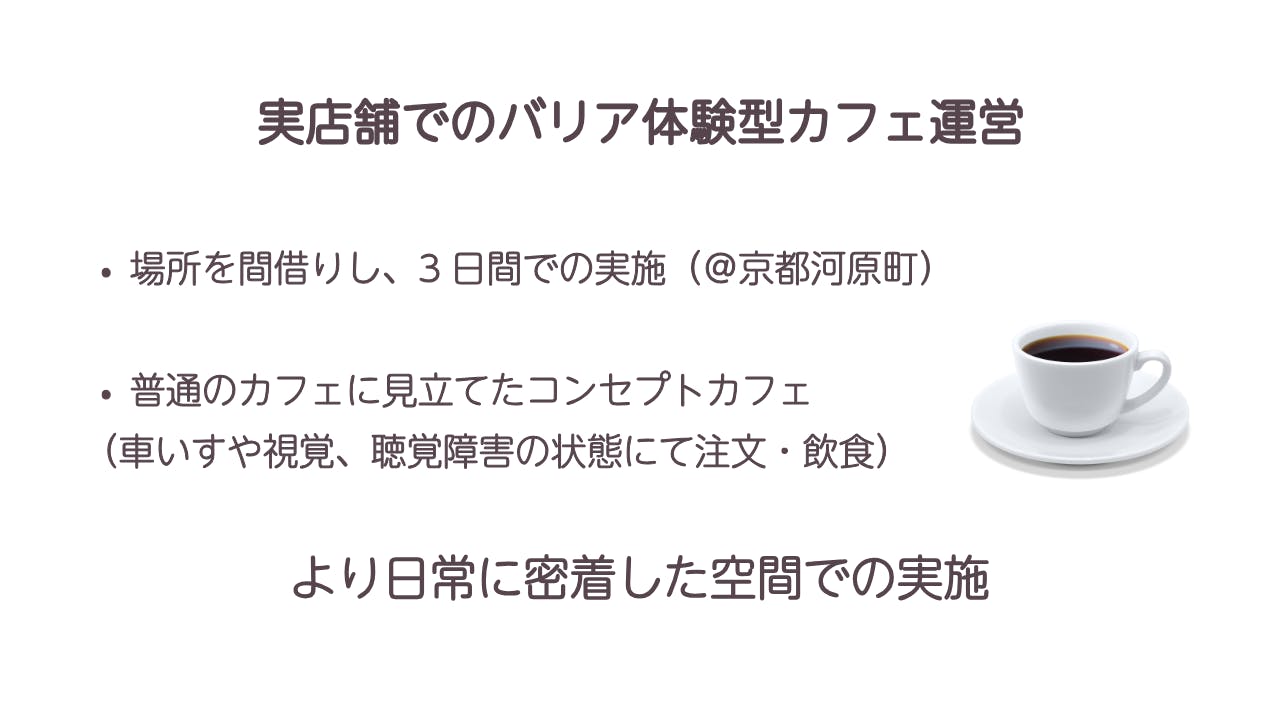 ぜひ、私たちのバリア体験型カフェプロジェクトに賛同頂けましたら幸いです。