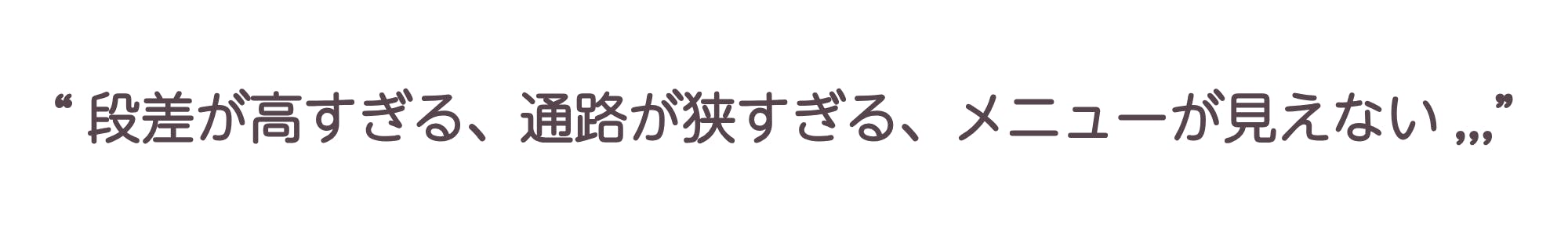 自分の経験からユニバーサルデザイン・バリアフリーといったキーワードに興味があり、特に日常生活の中でも飲食店で不便を感じることが多かった私は、大学入学後すぐに個人的に課外活動を始めました。