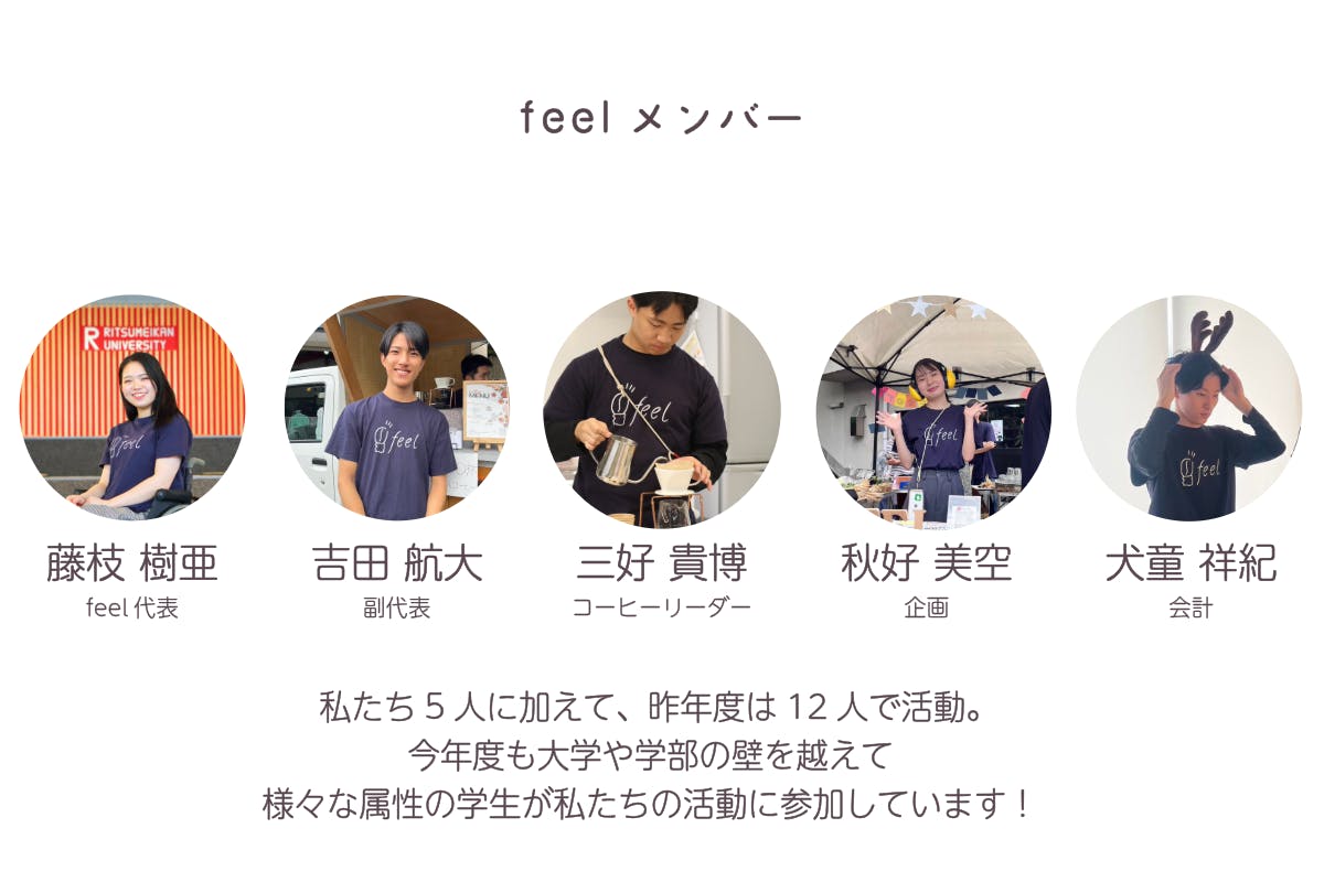 私たちは立命館大学経営学部の林永周ゼミに所属する学生で立ち上げた『feel』という福祉系の学生団体です。