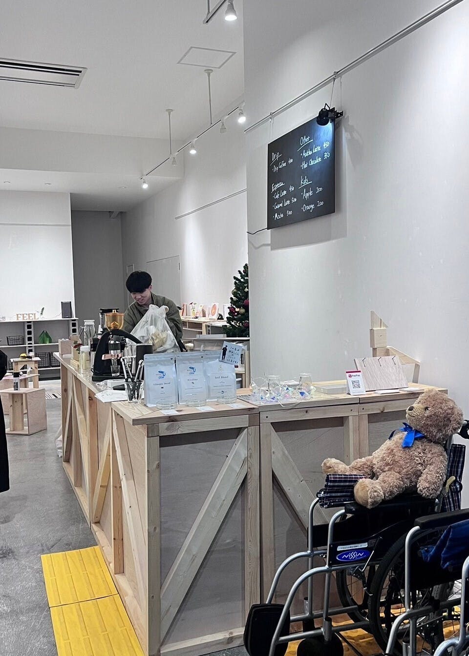 カフェ入口前の小さな段差を乗り越える難しさやレジでは体を乗り上げないとメニューが見えない大変さ、、、