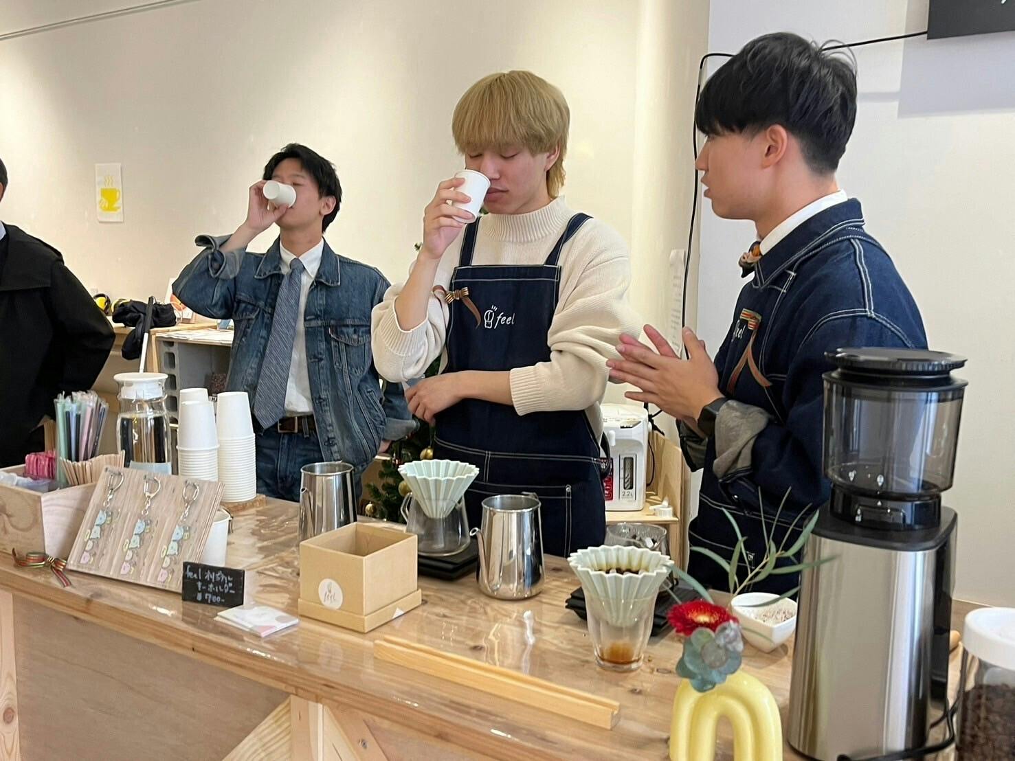当日は、feelメンバーだけでなく、コーヒー好きの仲間や同じゼミの友人にもスタッフとしてお手伝いしていただきました~!