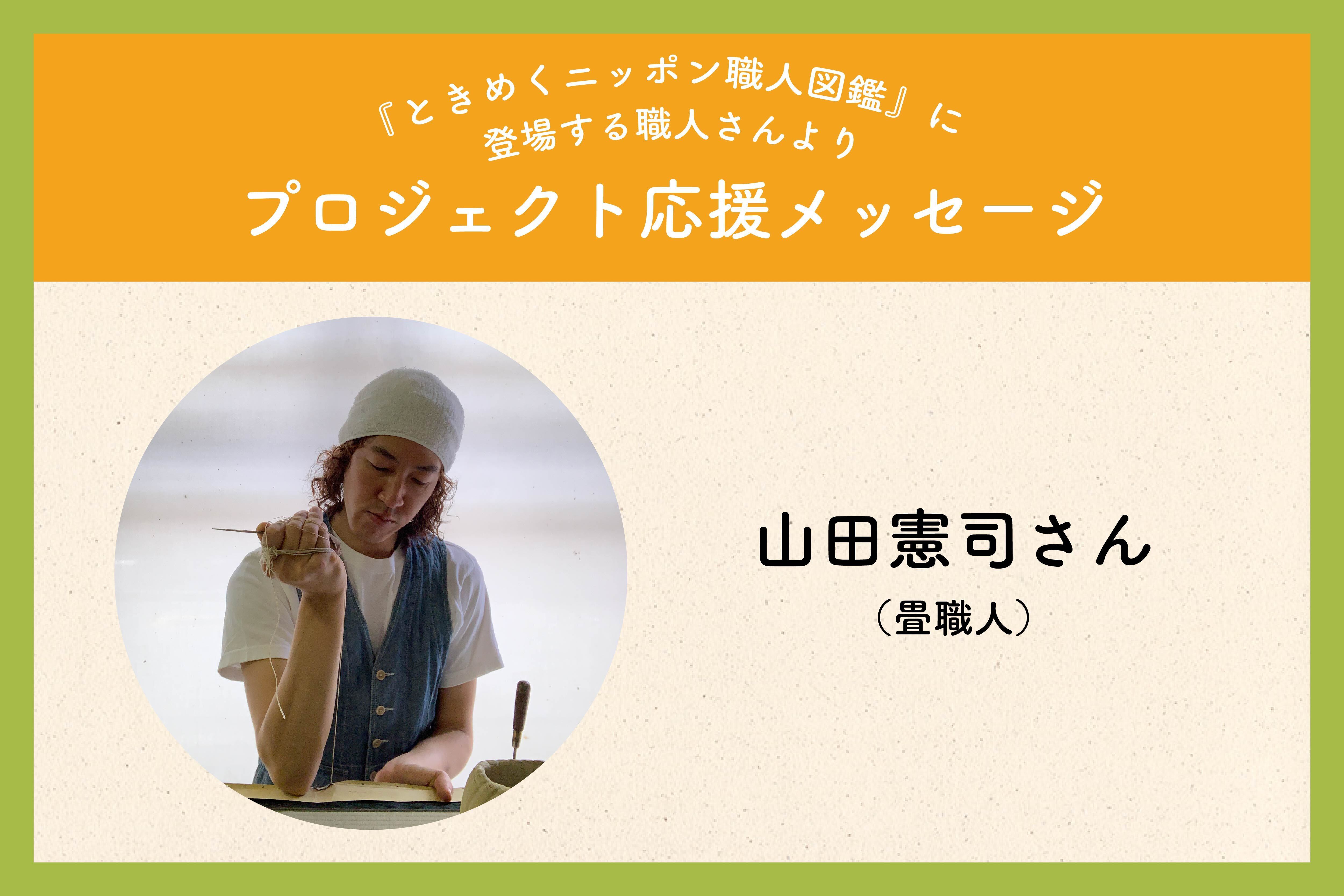 \職人さんからの応援メッセージをご紹介!vol.4/こんにちは、ニッポン手仕事図鑑です!ついに先日『ときめくニッポン職人図鑑』が発売されました!今回のプロジェクトでお届けする『ときめくニッポン職人図鑑』では、全国さまざまな分野の職人さんが31名登場します。今回登場いただいている職人さんからこのプロジェクトへ応援メッセージが届いているので、ご紹介いたします!==============================山田憲司さん(畳職人)畳職人としてこの本に参加させて頂いた山田憲司です。今回のプロジェクトは数年間をかけてじっくりと取材して頂き、一般の人にも伝わりやすい内容で本を完成してもらいました。機械化による大量生産が主流になってきている時代に、職人の手仕事にスポットを当ててくれるメディアはとてもありがたく感じています。人の手で作り出す魅力を伝えると共に、人の手で作り出す楽しさをたくさんの子供達にこの本を通して伝わってほしいです!==============================現在、86名もの方にご支援いただき、支援額も70万円を超えました。ご支援、ご協力いただいた皆さまには感謝してもしきれません…!全国各地のさまざまな子どもたちが”本を購入する”というハードルを乗り越えるのは、安易なことではありません。子どもたちにとって、職人という仕事が将来の選択肢のひとつになるようにより多くの施設や地域に寄贈していきたいと思っています。もちろん、店頭や通販などでご購入いただくのも大変嬉しいですが、このプロジェクトで購入するとクラファン限定特典も付いてきますし、書籍の施設への寄贈や被災した輪島塗の産地への寄付も行えます!ネクストゴールは、支援額100万・寄贈100箇所!全国には、児童養護施設や子ども食堂などの施設が1000箇所近く点在しているので、このゴールでもまだまだ多く及ばないですが、職人さんや子どもたちのために私たちができることを全力でやり切りたいと思っています!そのためにも皆様のご支援やご協力は何よりの力になります…!拡散や応援だけでも大変励みになりますので、お力添えいただけたら嬉しいです☺次回の応援メッセージは、栗原大地さん(東京額縁職人)さんです。お楽しみに!