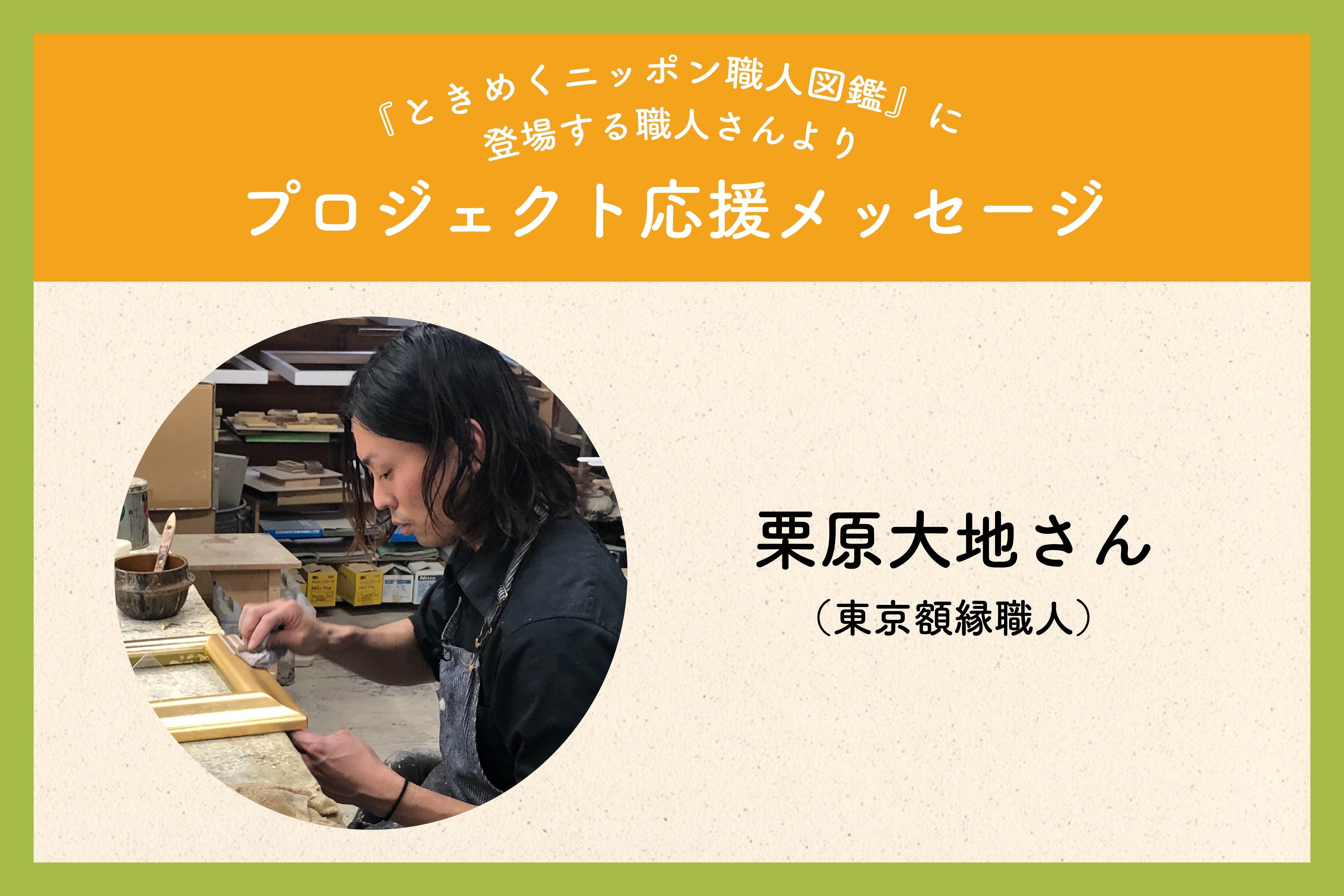 \職人さんからの応援メッセージをご紹介!vol.5/こんにちは、ニッポン手仕事図鑑です!ついに先日『ときめくニッポン職人図鑑』が発売されました!今回のプロジェクトでお届けする『ときめくニッポン職人図鑑』では、全国さまざまな分野の職人さんが31名登場します。今回登場いただいている職人さんからこのプロジェクトへ応援メッセージが届いているので、ご紹介いたします!==============================栗原大地さん(東京額縁職人)職人のの魅力を次世代へとつなげる「ときめくニッポン職人図鑑」のプロジェクトは、職人の技と心を子どもたちに届ける素敵な試みです。僕も東京額縁職人として参加していますが、子どもたちに職人の誇りと情熱を感じてもらいたいです!この本が、一人でも多くの子どもたちに夢と希望、ときめきを与え、未来の担い手たちに新たな扉を開くきっかけとなることを願っています。 応援、どうかよろしくお願いします!==============================現在、支援者94名、支援額も80万円を超え、ネクストゴールも近づいてまいりました!ご支援、ご協力いただいた皆さまには感謝してもしきれません…!全国各地のさまざまな子どもたちが”本を購入する”というハードルを乗り越えるのは、安易なことではありません。子どもたちにとって、職人という仕事が将来の選択肢のひとつになるようにより多くの施設や地域に寄贈していきたいと思っています。もちろん、店頭や通販などでご購入いただくのも大変嬉しいですが、このプロジェクトで購入するとクラファン限定特典も付いてきますし、書籍の施設への寄贈や被災した輪島塗の産地への寄付も行えます!ネクストゴールは、支援額100万・寄贈100箇所!全国には、児童養護施設や子ども食堂などの施設が1000箇所近く点在しているので、このゴールでもまだまだ多く及ばないですが、職人さんや子どもたちのために私たちができることを全力でやり切りたいと思っています!そのためにも皆様のご支援やご協力は何よりの力になります…!拡散や応援だけでも大変励みになりますので、お力添えいただけたら嬉しいです☺まずは、産地の希望になるためにもまずは、支援者100人を目指して駆け抜けてまいりますので、引き続き応援のほどよろしくお願いいたします!!!
