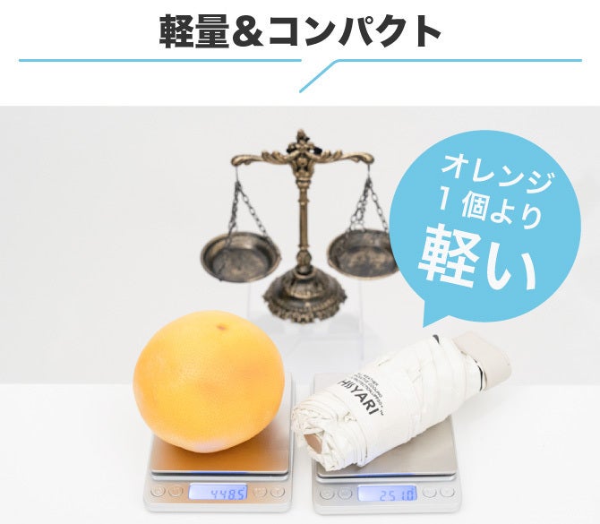 その重量はオレンジ1つよりも圧倒的に軽くなっています。お持ちのスマートフォンよりも軽いかも?