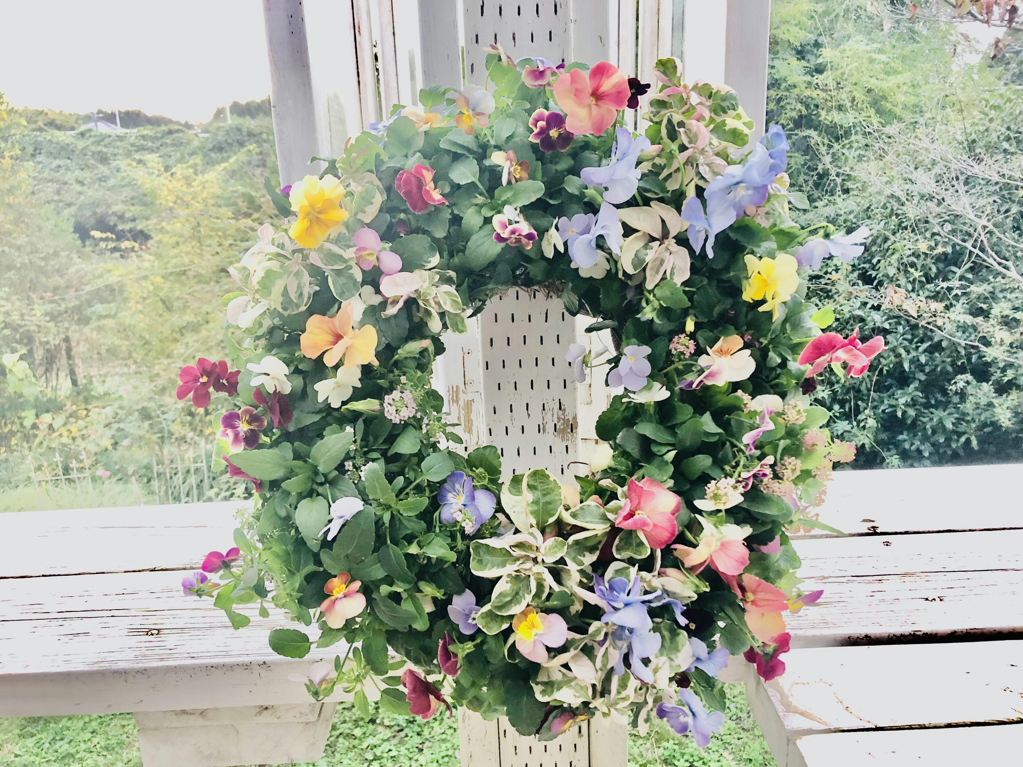 リターンのひとつ、プランツギャザリング!パンジー&ビオラの寄せ植えリースレッスンを開催致します。(11月29日〜12月1日の3日間予定)