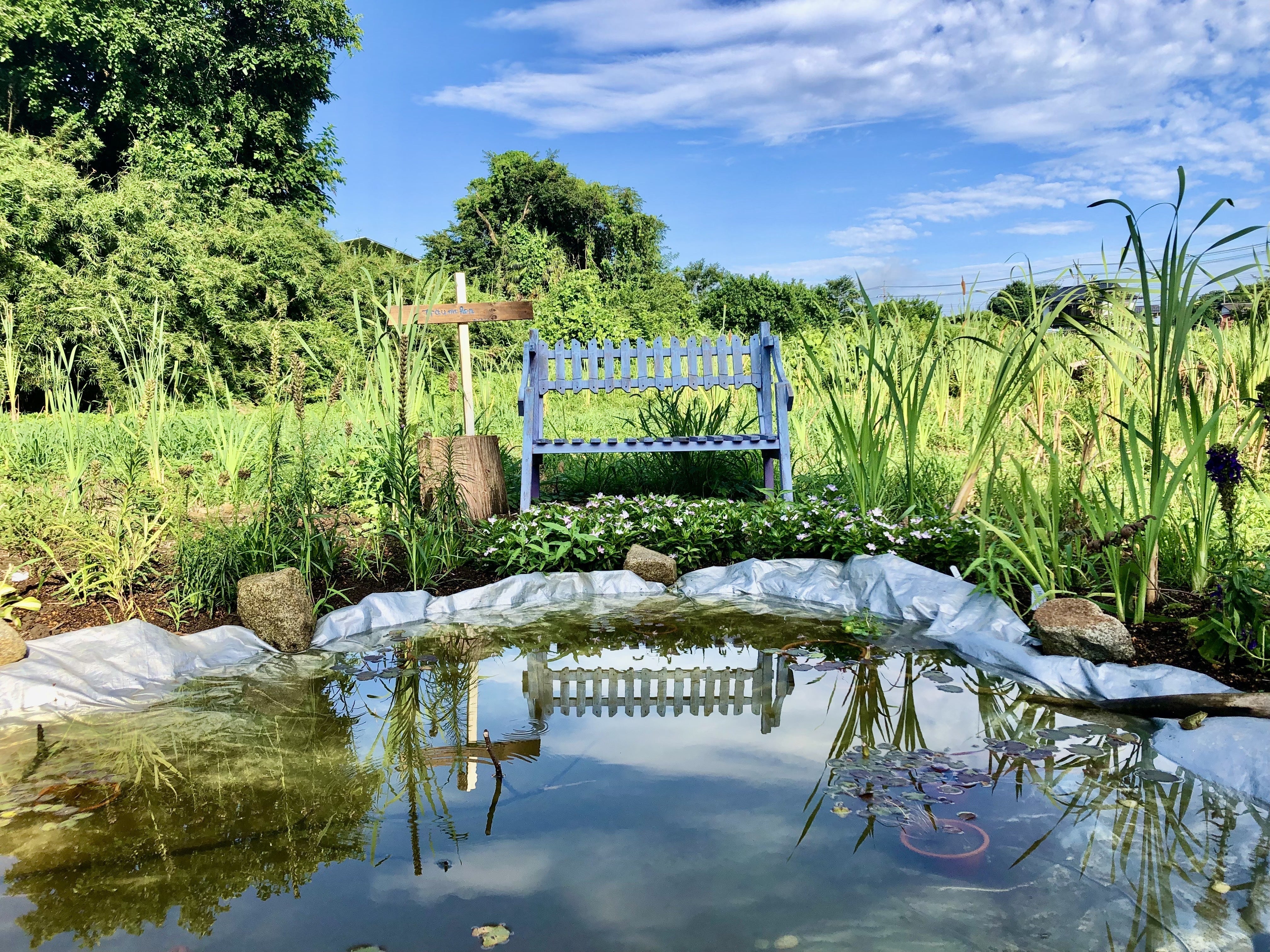 なかでも、この借地内にあるハート型の池は、滞在してくれたドイツ人WOOFERのVincentがスコップ1本で土を掘って作り上げてくれたもので、池の名前もつけてくれました。