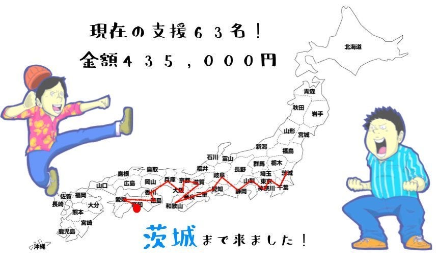 目標金額達成までで考えると、現在茨城県まで来たことになります!