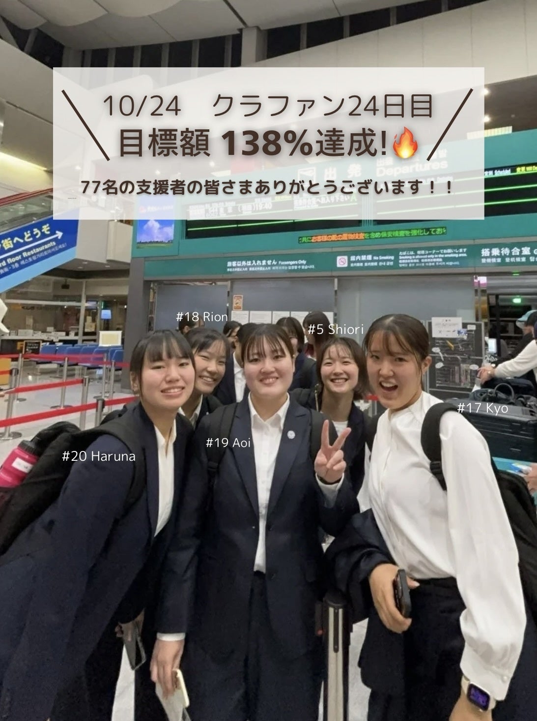 開始27日目!ネクストゴールを大幅に越えたくさんのご支援ありがとうございます!残り少ない期間ですが最後までよろしくお願いします!本日はオフでした!練習がなく選手それぞれリフレッシュやケアをしています!また明日からの練習に向けがんばります!今日の一枚!