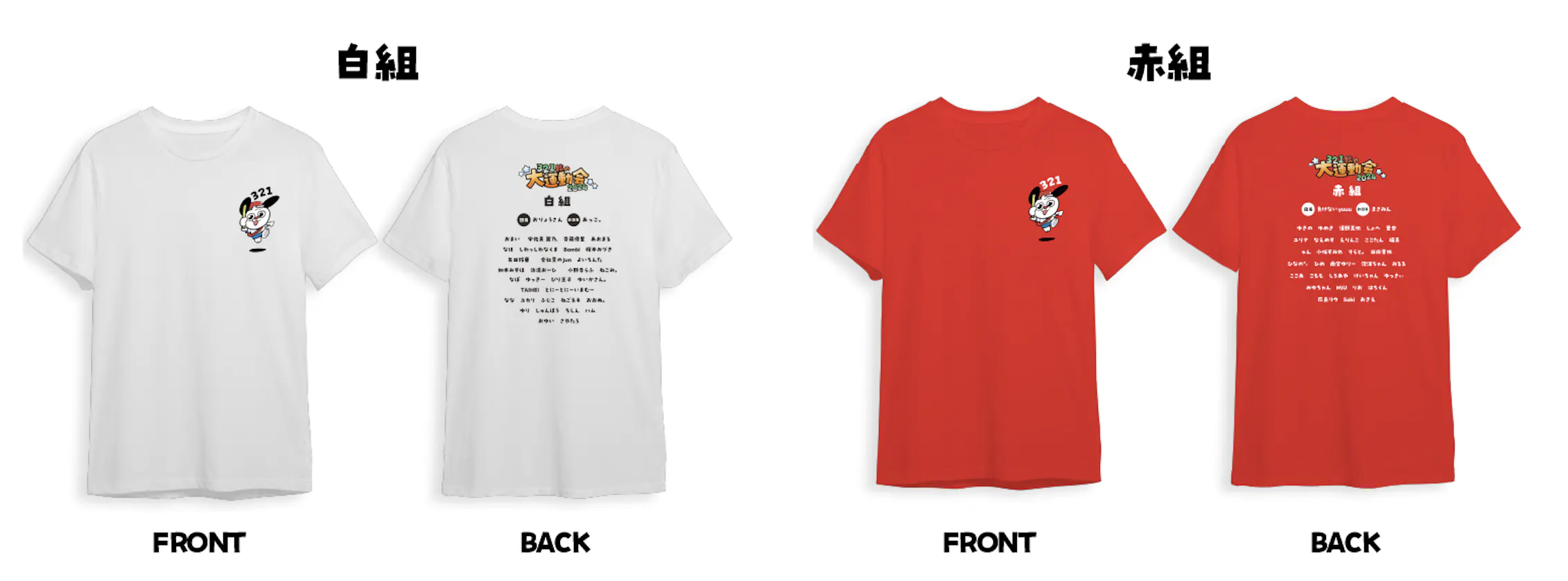 赤組・白組のどちらかお好きなTシャツをお選びいただけます。