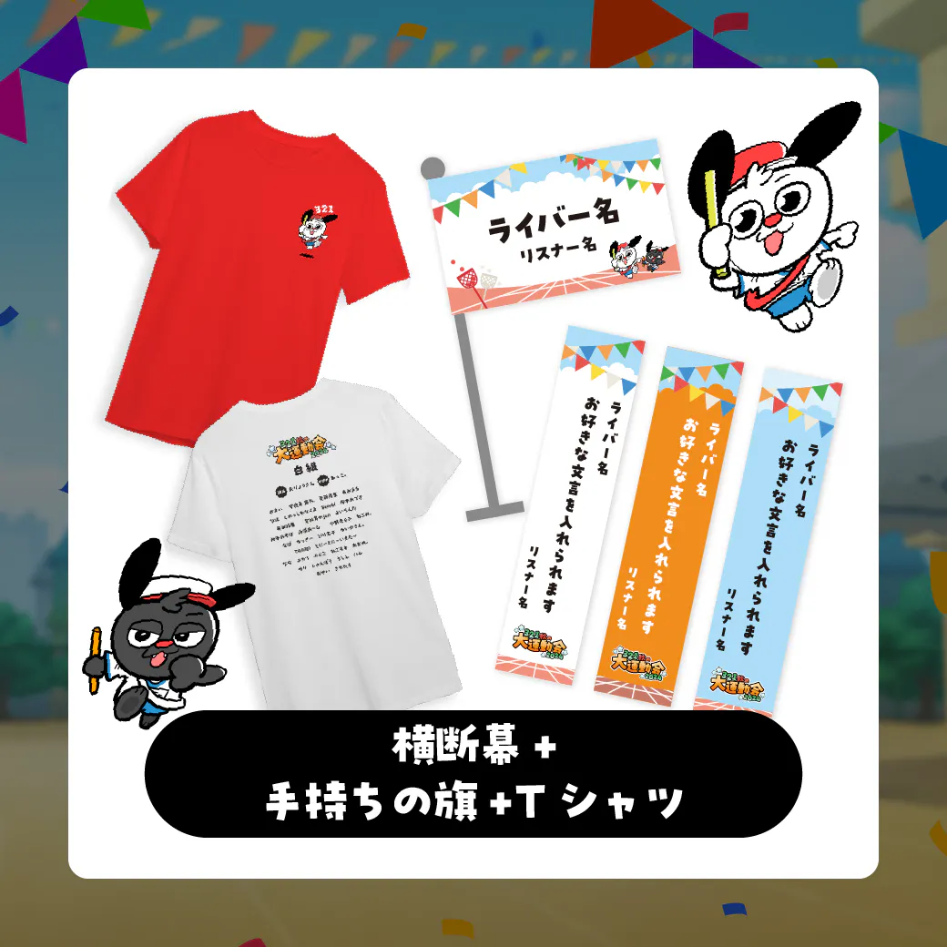 横断幕、手持ち旗、Tシャツの3点セットです。