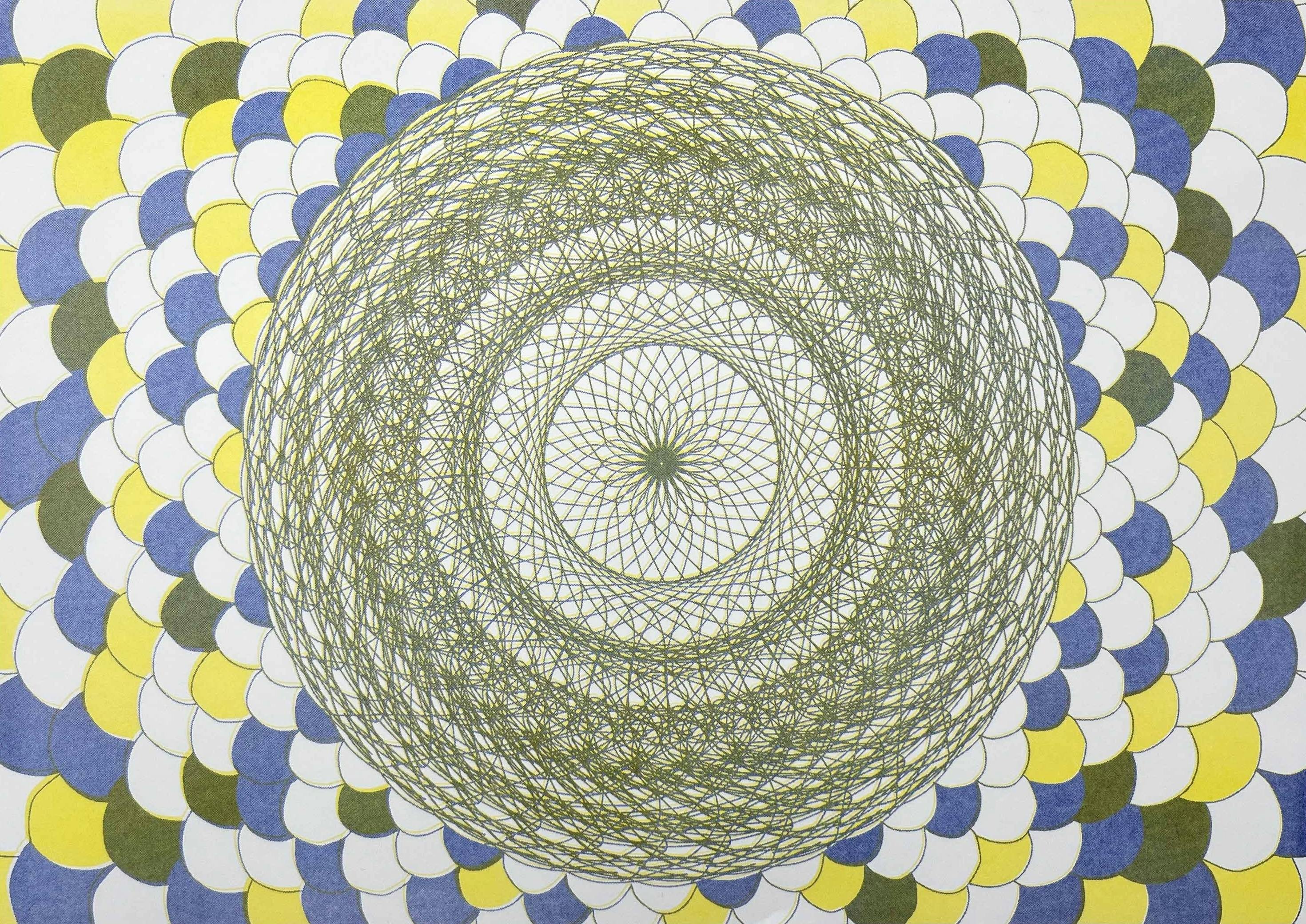 テキスタイルデザイン専攻領域の学生がデザインし、リソグラフで印刷したオリジナルのハガキです。1つの大きな絵を8つに分割することで、8種類のデザインのハガキが生まれます。A~Eからそれぞれランダムに1枚ずつ選び、合計5枚のセットでお届けします。
