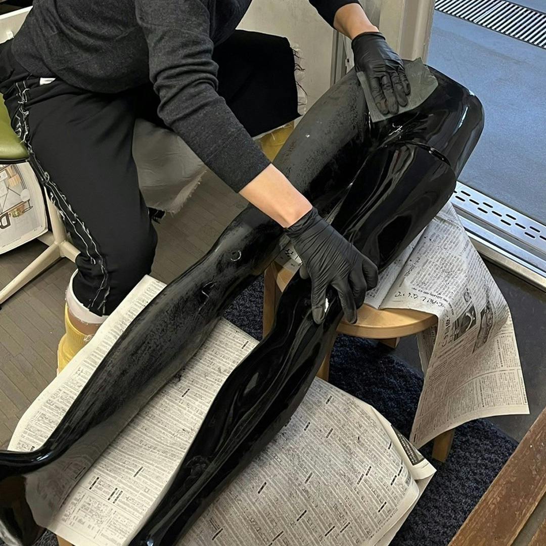 展示に使うマネキンの質感にこだわり、ヤスリがけを行うことでマットに仕上げています。