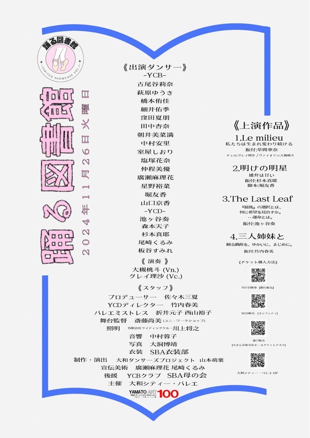 2024/11/24 20:23皆様いつも応援頂きありがとうございます!11月23日、24日と私たちが活動の拠点とする神奈川県大和市が今年新しく立ち上げた【SORAアーティスト】という事業のイベントに2日間出演させていただきました。パフォーマンスをご覧にお越しくださった皆様本当に有難うございました!初めての路上でのパフォーマンスは新鮮でとても面白かったです!楽しそうに観てくれる方が沢山いて幸せでした!これからも応援よろしくお願いします!そして明日から『踊る図書館』の劇場入りです!いよいよですね♡初めてダンサー達で舞台制作から運営まで行っているのでより一層気持ちが高まっています!心打たれるような素敵な舞台になっているので是非観に来てください!お待ちしております!ーーーーーーーー『踊る図書館』YCB・YCD SHOWCASE vol.1生演奏と踊りでみる文学作品集身体表現だけでコミュニケーションをとる方法とは!?日時: 11/26(火)17:00 の部19:30 の部(全 2回公演) 会場: 大和市文化想像拠点シリウスサブホール 入場料: 2,800円(自由席)~ 演 目 ~ 『 Le milieu 』振付:草間華奈『 三人姉妹と 』 振付:竹内春美『 明けの明星 』脚本:堀 友香振付:杉本真耶『 The Last Leaf 』 振付:池ヶ谷奏 もっと見る