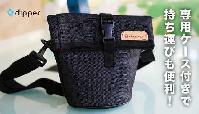 持ち運びも便利です!どこでもdipperを持ち運んで使えるように、専用のポータブル保護ケースが付属しています。精密機器のdipperを保護する為に、ケース内部には衝撃吸収素材を使用しています。移動もラクラクで、場所を選ばずどこにでもdipperを携帯して使えます。