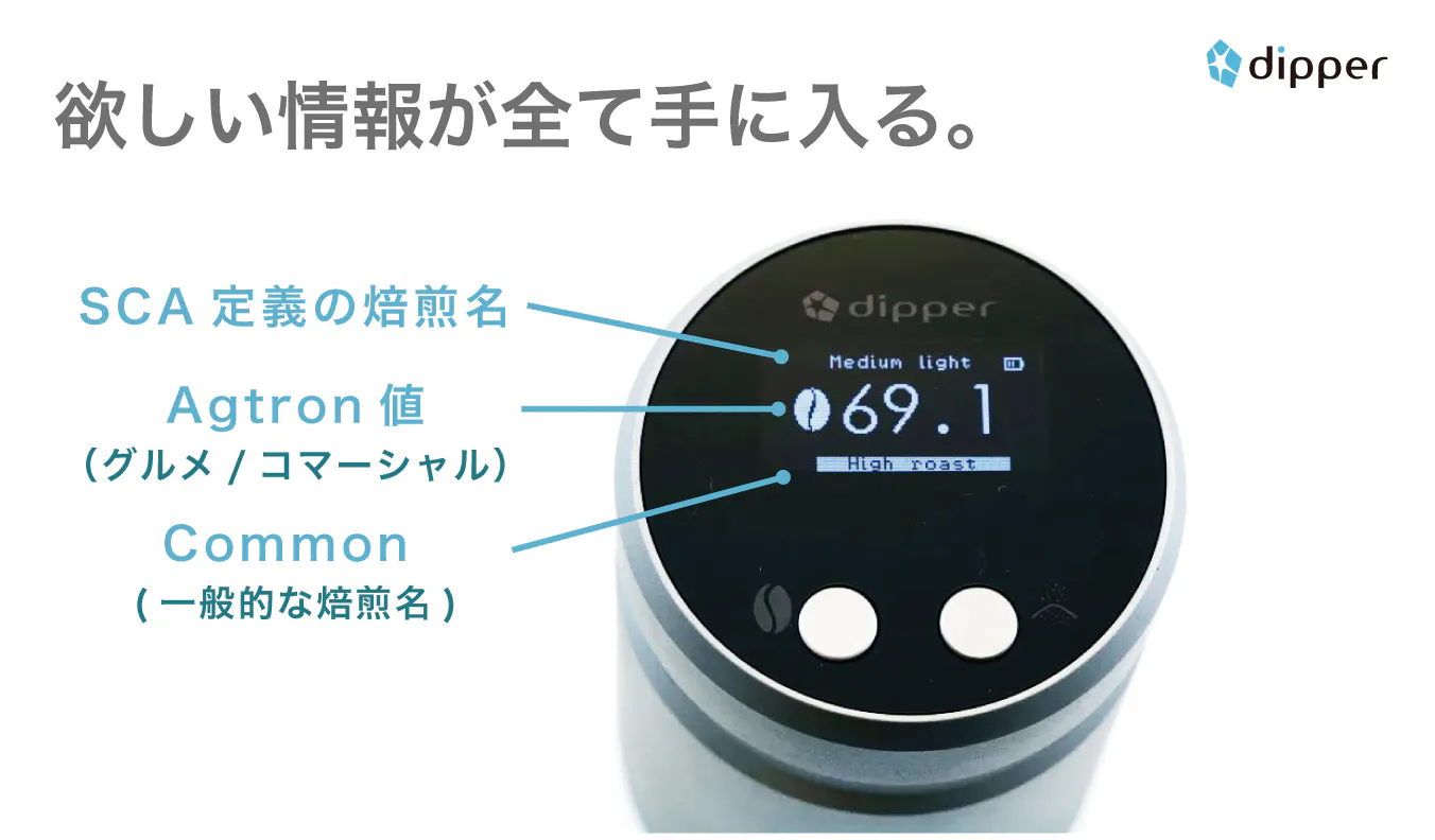 dipperを通じて日本にこれまで以上にアグトロン値を用いた焙煎度合いの測定と品質管理が普及し、皆様のコーヒーライフがより豊かなものになっていくことを願っています。