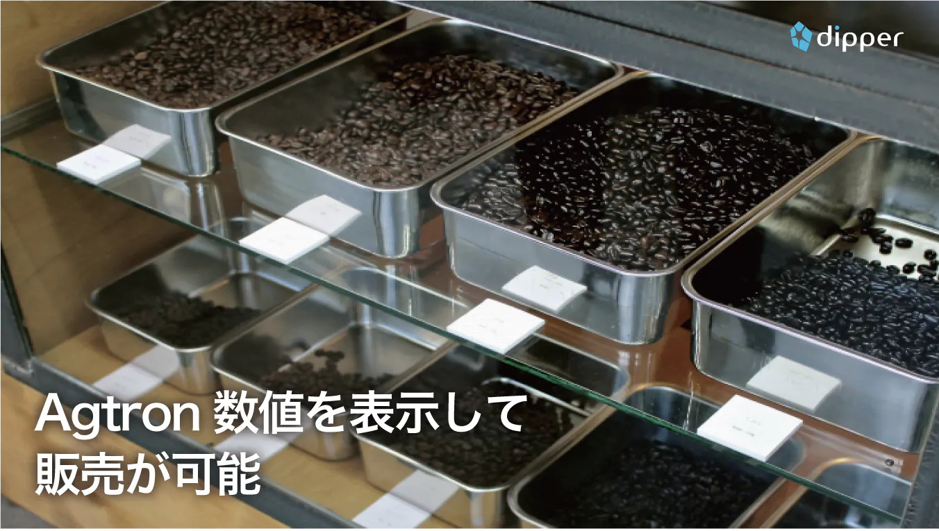 dipperで測定したアグトロン値を添えることで、焙煎度を数字で伝えられ、より専門的で信頼感のある接客が可能に。お客様の好みも把握しやすくなり、お店とのマッチング度が高まります。