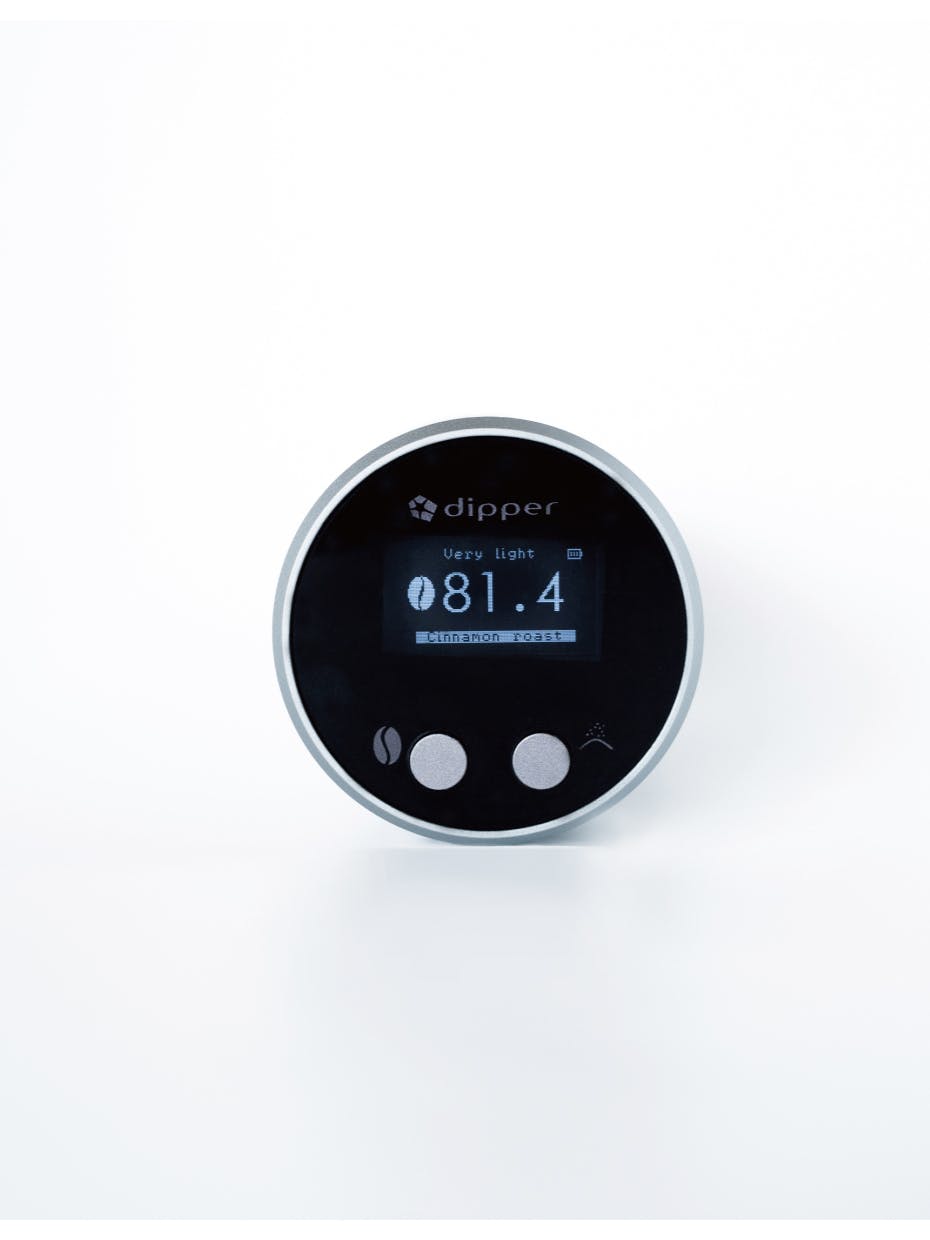 《 dipper|ディッパー 》はコーヒーの豆・粉の焙煎度合いをデジタル計測する、コーヒー焙煎度スケールです。