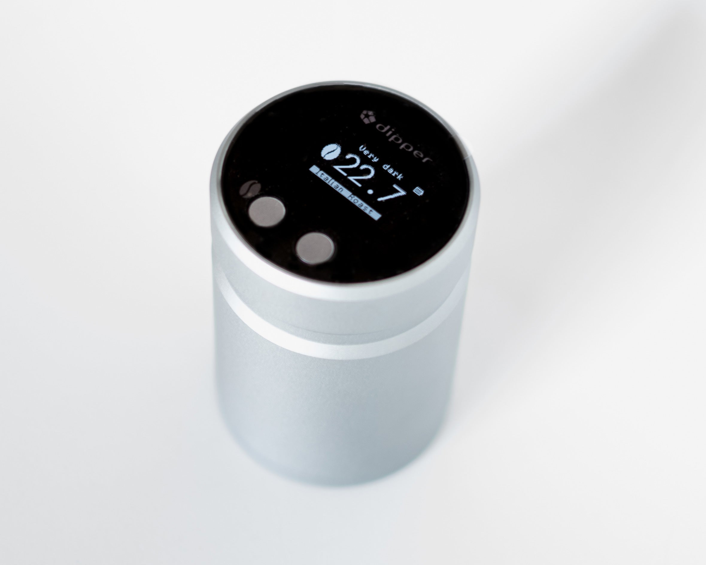 《 dipper|ディッパー 》はコーヒーの豆・粉の焙煎度合いをデジタル計測する、コーヒー焙煎度スケールです。