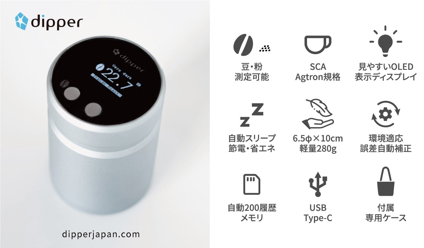dipperを通じて日本にこれまで以上にアグトロン値を用いた焙煎度合いの測定と品質管理が普及し、皆様のコーヒーライフがより豊かなものになっていくことを願っています。