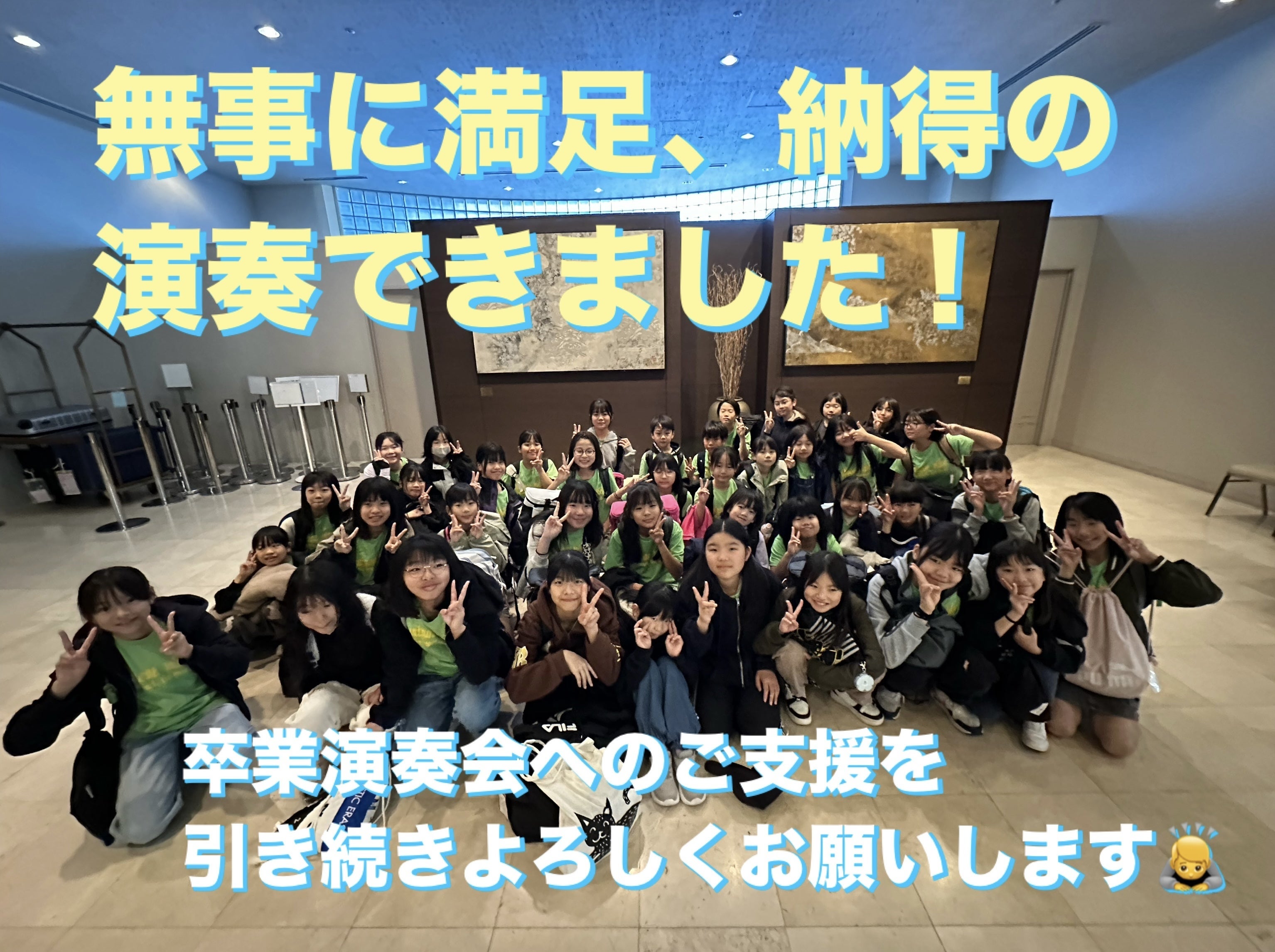 昨日のコンクールですが、子どもたちは本当に満足した演奏ができました!!演奏が終わって、写真撮影の際には泣いている子もいました。頑張ってきたことが報われて良かったと思います!!これも皆様のご支援はなければできなかったことです。本当にありがとうございます!!