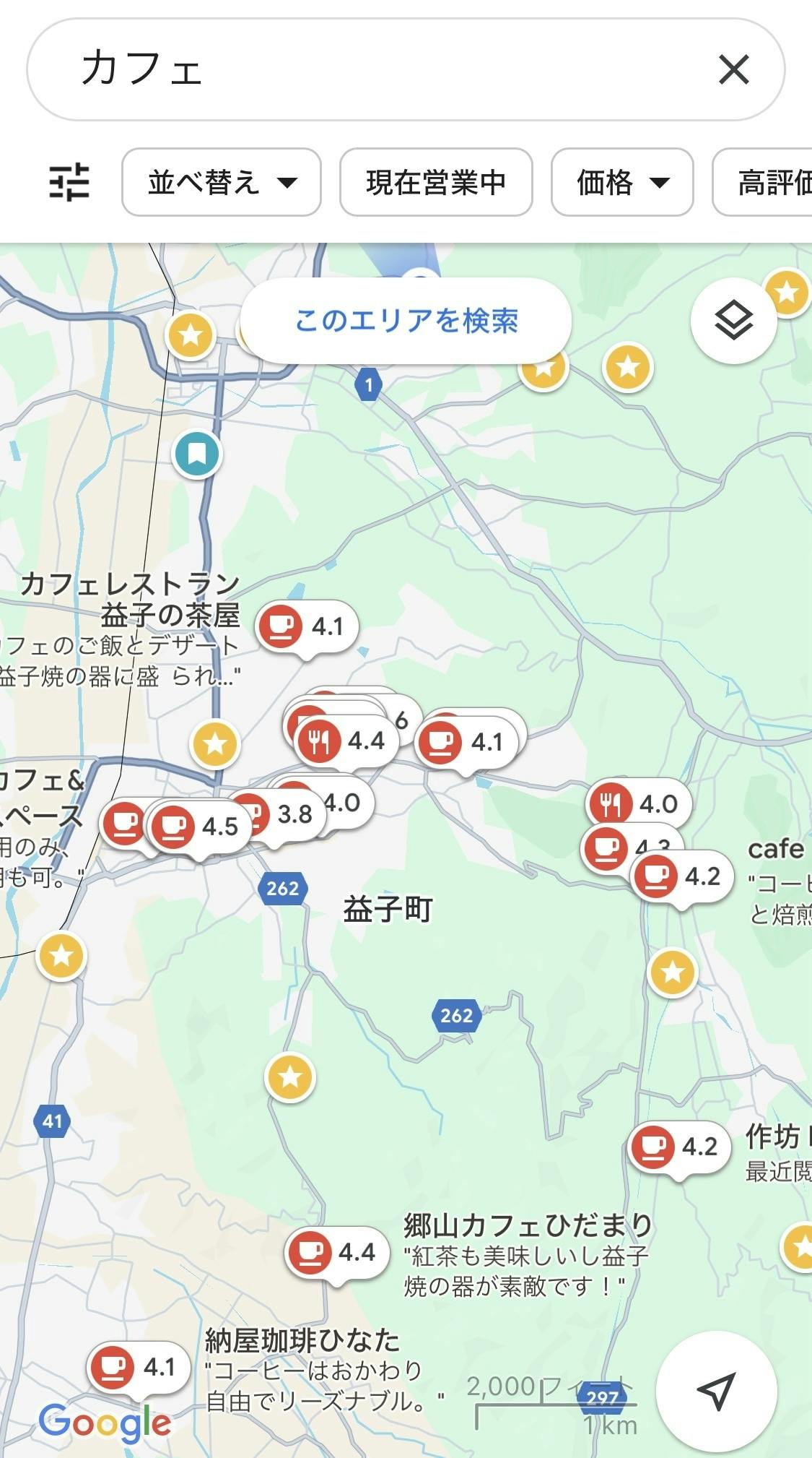 (Googleマップで「カフェ」と検索すると、これだけのお店がヒットします!)