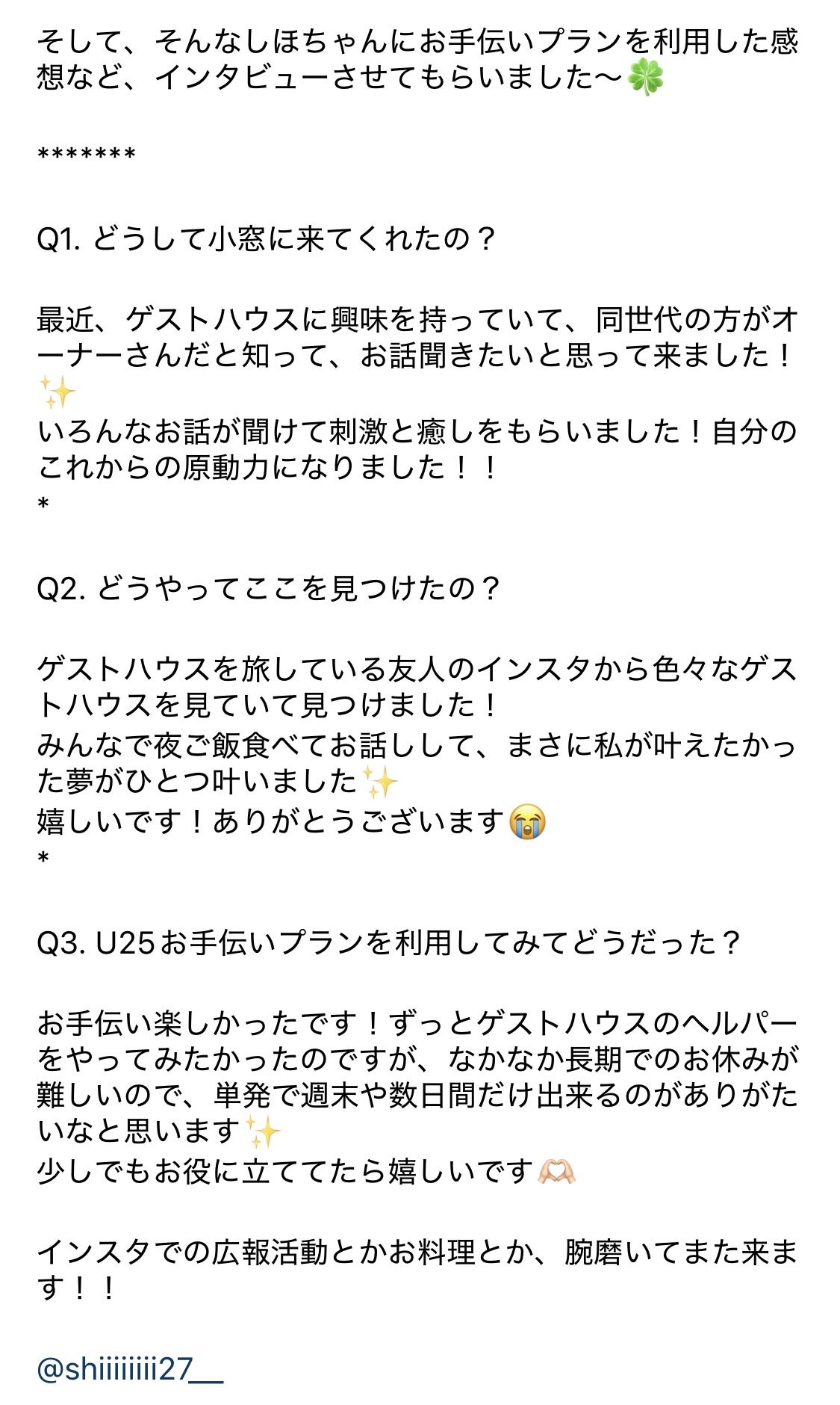 【クラファン中間報告&U25お手伝いプランを利用されたゲスト様のご紹介】