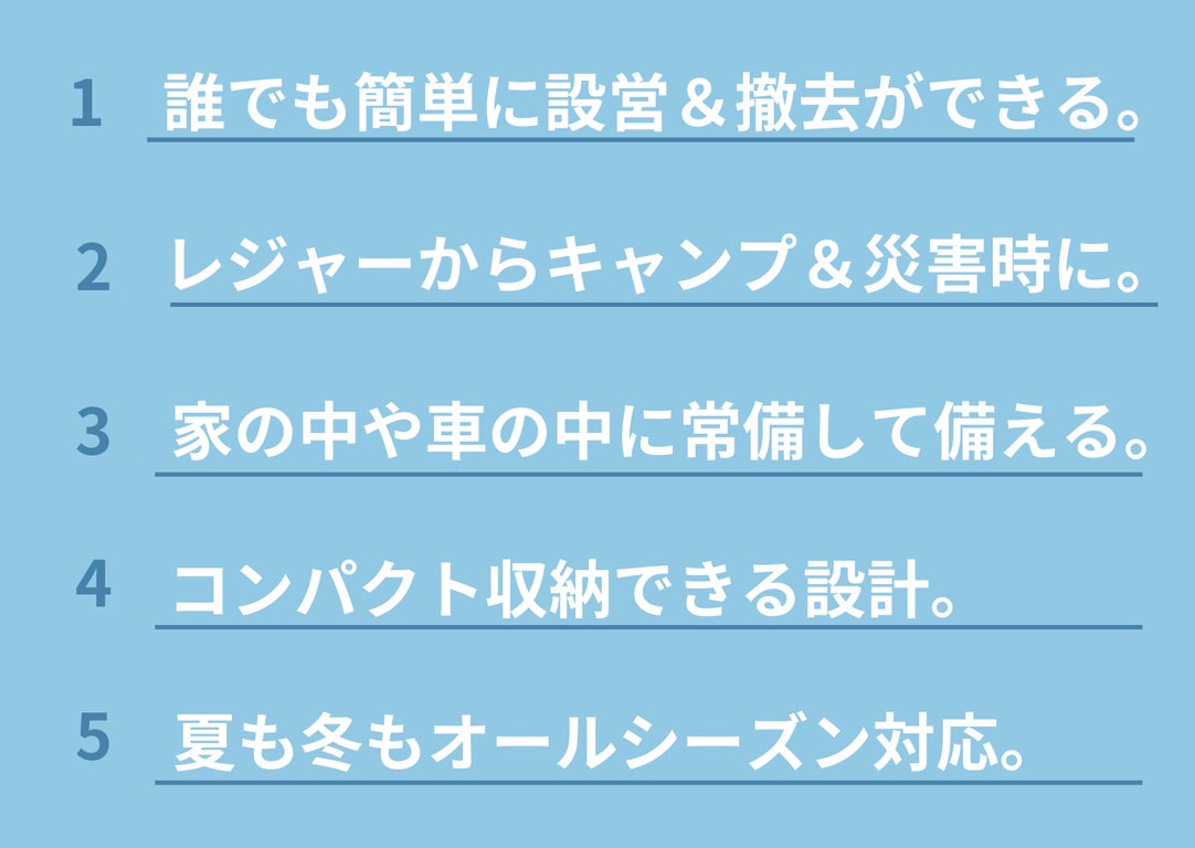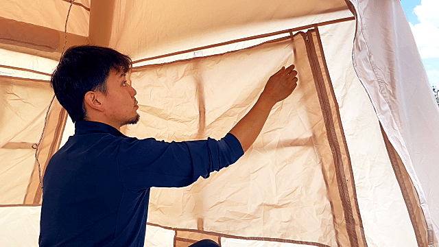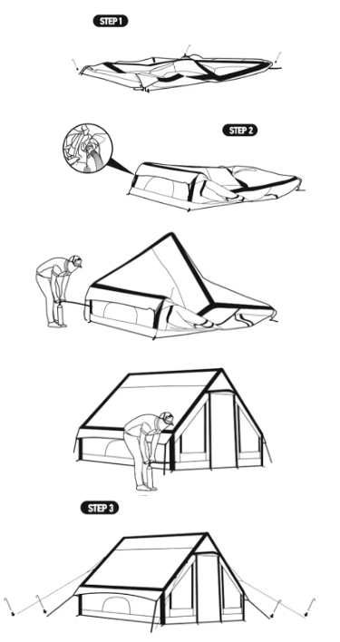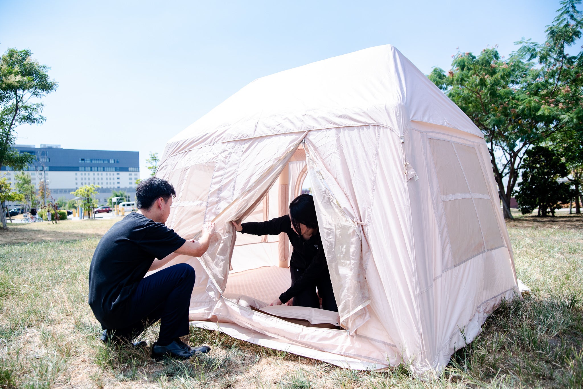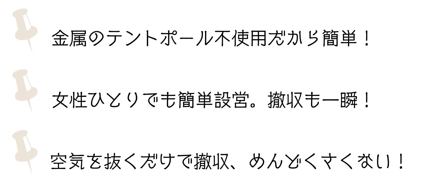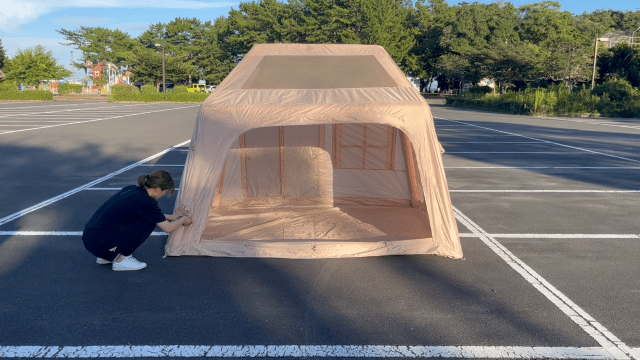 空気を送り込むだけで設営できるため、不慣れな初心者でも簡単に扱えます。