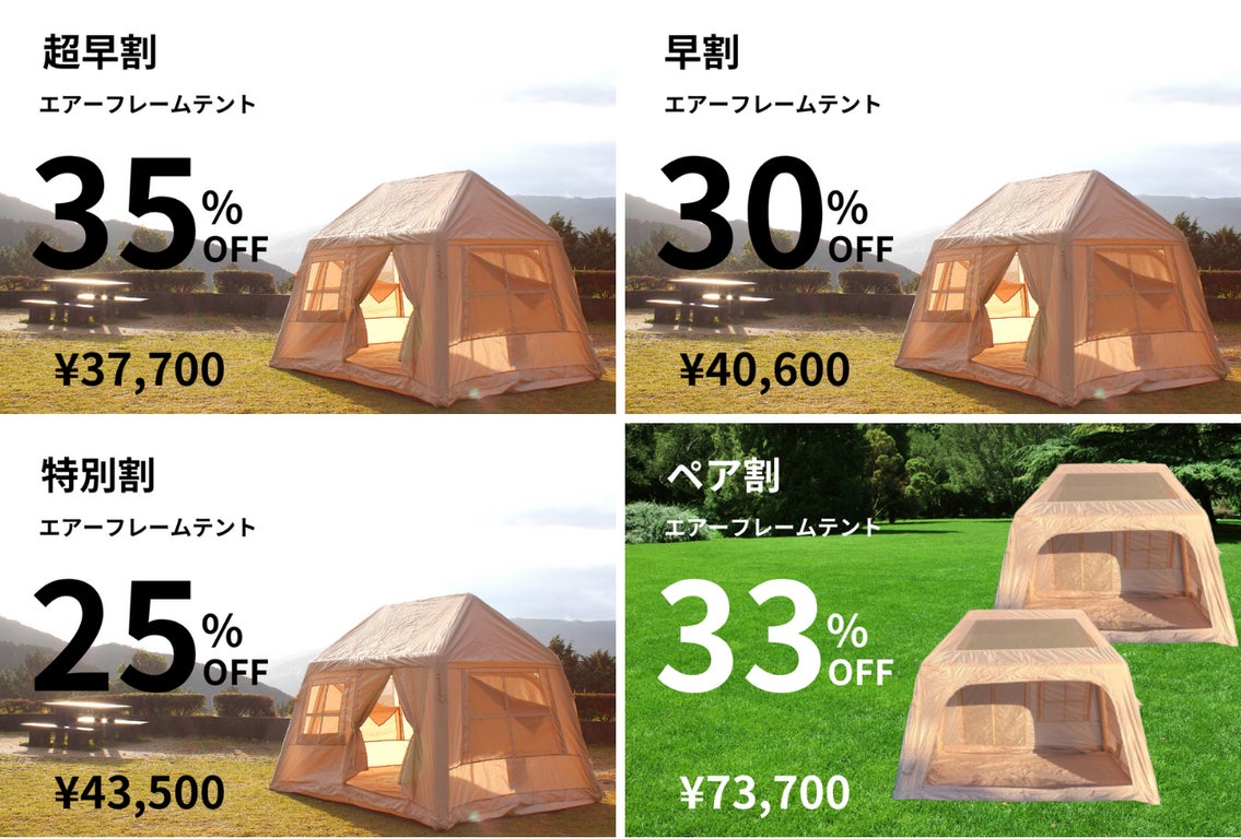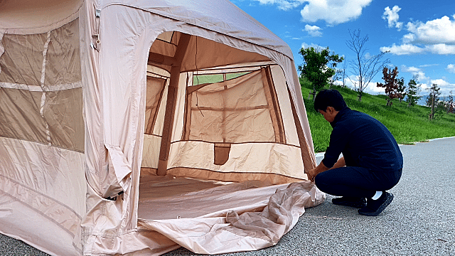 空気を送り込むだけで設営できるため、不慣れな初心者でも簡単に扱えます。