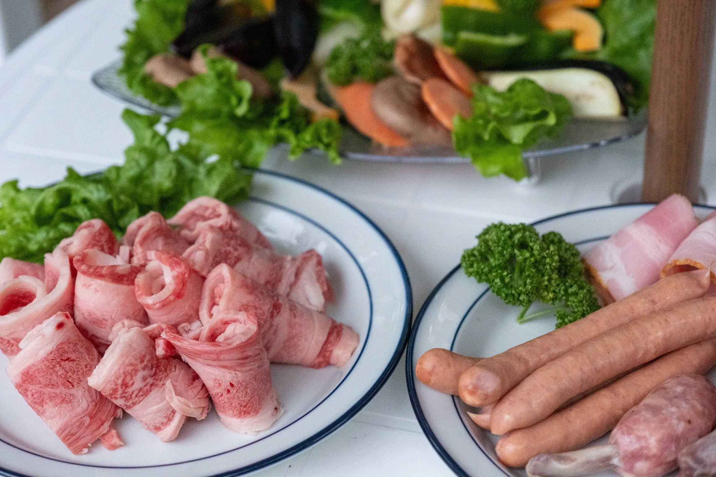 夕食をご希望の方には、地元那須の新鮮な野菜や和牛を使用したバーベキューの材料をご提供します。わいわいと焼いていただき、良質な素材の味をお楽しみください。