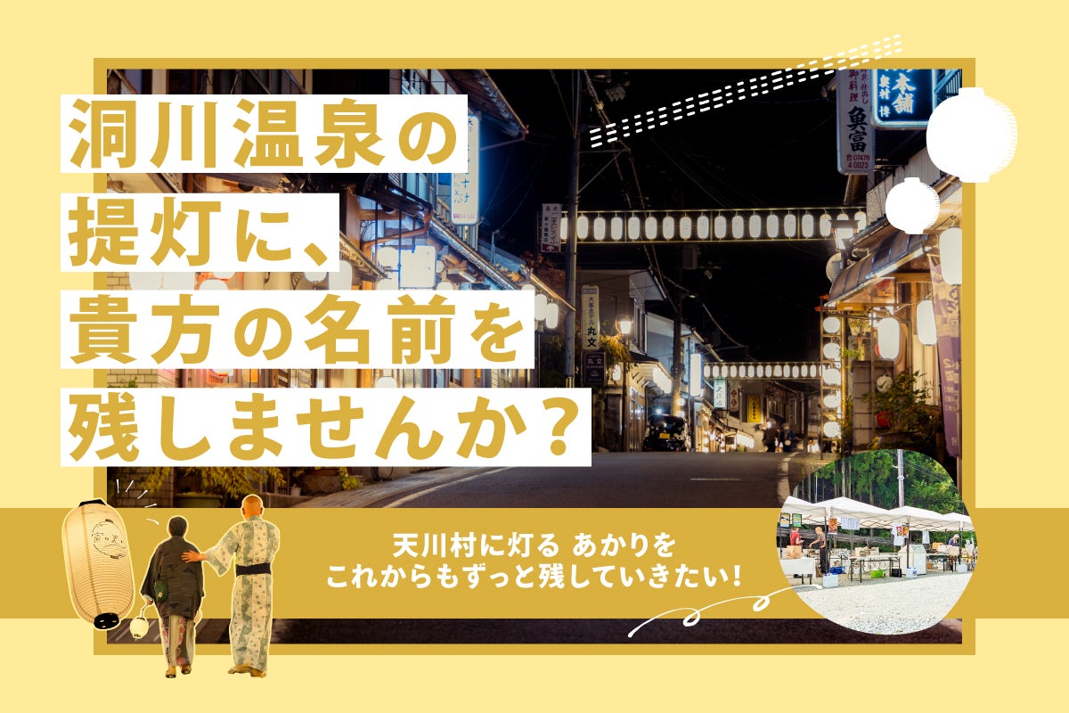 ・提灯1個に、あなたのお名前が記入されます。(ご提供いただいたロゴやイラストの使用も可能)・完成した提灯は約1年間設置いたします。(冬季中は積雪状況により撤去する場合がございます。)※こちらをご支援いただくと名入れ提灯にプラス1灯設置いたします。宵々天川年間サポーター(30,000円)