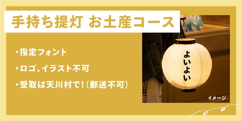 こちらのコースをご選択の方には、宵々天川のロゴとお名前を記入した手持ち提灯を天川村にお越し頂いたお土産としてお持ち帰りいただけます!
