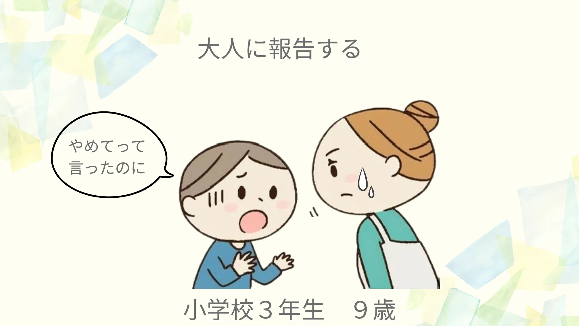 「やめてて言ったのにやめてくれん」「ごめんねと言ったのに許してくれん」と。