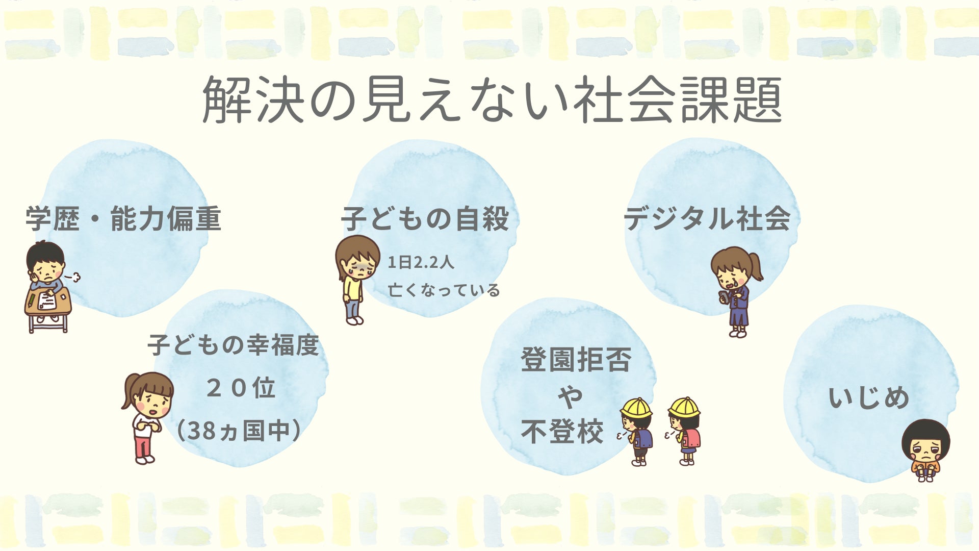 また現在、日本の子どもたちが直面しているいくつかの社会的課題があります。