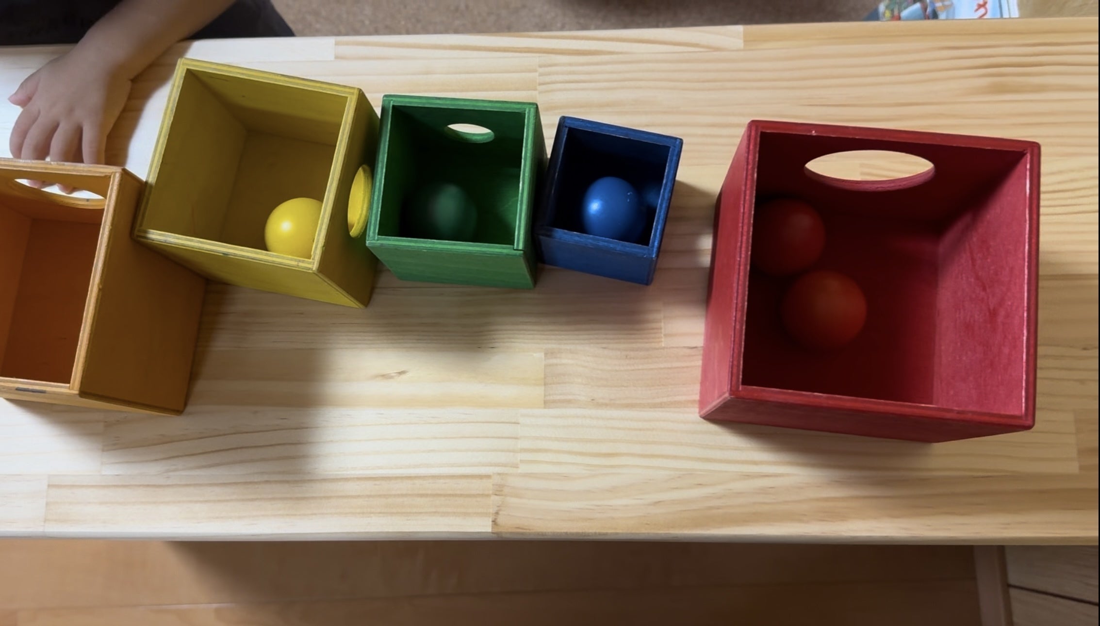 箱と同じ色の球を中に入れています。