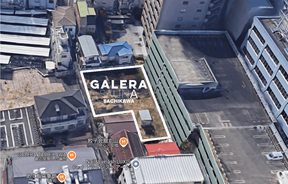 サウナ施設建設予定地のある立川駅東北エリアは夜の街で、あまり評判の良くない場所でした。しかし当プロジェクト代表の阿部昌史は、ここに立川の活性化と街のにぎわいを促進しようと2021年12月末にGALERA FOODMARKET TACHIKAWAを建設。現在ここには10軒の地元立川で人気の飲食店が出店しており、既にエリアのシンボル的な存在となっています。