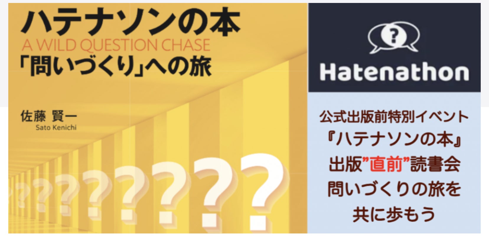 https://peatix.com/event/4177663/view問いづくりの旅を共に歩もう—『ハテナソンの本』クラファン終了”直前”&公式出版”直前”記念読書会実施目的11月末頃に公式出版予定の『ハテナソンの本ー「問いづくり」への旅』の冒頭部(まえがき、もくじ、プロローグ)を読んでいただき、著者と、あるいは参加者同士で対話する機会と場を提供いたします。クラウドファンディングを応援してくださった支援者へ感謝の気持ちを伝えるとともに、まだの方には先行して本のエッセンスを体験してもらい、次のアクションをご検討いただくきっかけを提供する場となります。実施時間と方法2024年11月24日(日)13時30分〜16時30分:対面およびオンライン実施場所遊べるキッチンkiten 〒603-8053 京都府京都市北区上賀茂岩ケ垣内町91 北山ビル 2F参加定員オンライン形式:50名(Zoom形式:参加登録いただいた方には事前に設定情報をお知らせいたします)対面形式:15名参加料一般参加者:2,000円(キャンセルポリシー:イベント前日以降のキャンセルに対しては、返金いたしません。)クラウドファンディング【『ハテナソンの本ー「問いづくり」への旅』を出版したい!】支援者:無料お申し込み方法下記ピーテックスのイベント告知サイトにてご登録ください。https://peatix.com/event/4177663/viewみなさんのご参加お待ちしております!ご案内役:佐藤 賢一クエスチョン・デザイナー NPO法人ハテナソン共創ラボ 代表理事お問い合わせ先:ハテナソン共創ラボ事務局メール:hatenathon.office<atto>gmail.com 注:<atto>はアットマークに置き換えてください。ホームページ:https://www.hatenathon.com/