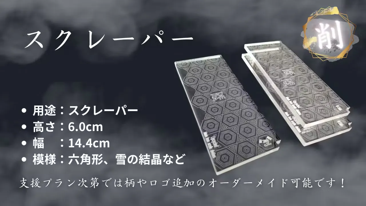 アクリル板廃材を活用し、スキーメンテナンス用のスクレーパーやスクレーパー研ぐシャープナーを製作するこのプロジェクトは、スキーヤーの皆様にとって大変役立つものとなります。そして、それは皆様の温かいサポートのおかげで実現することができました。