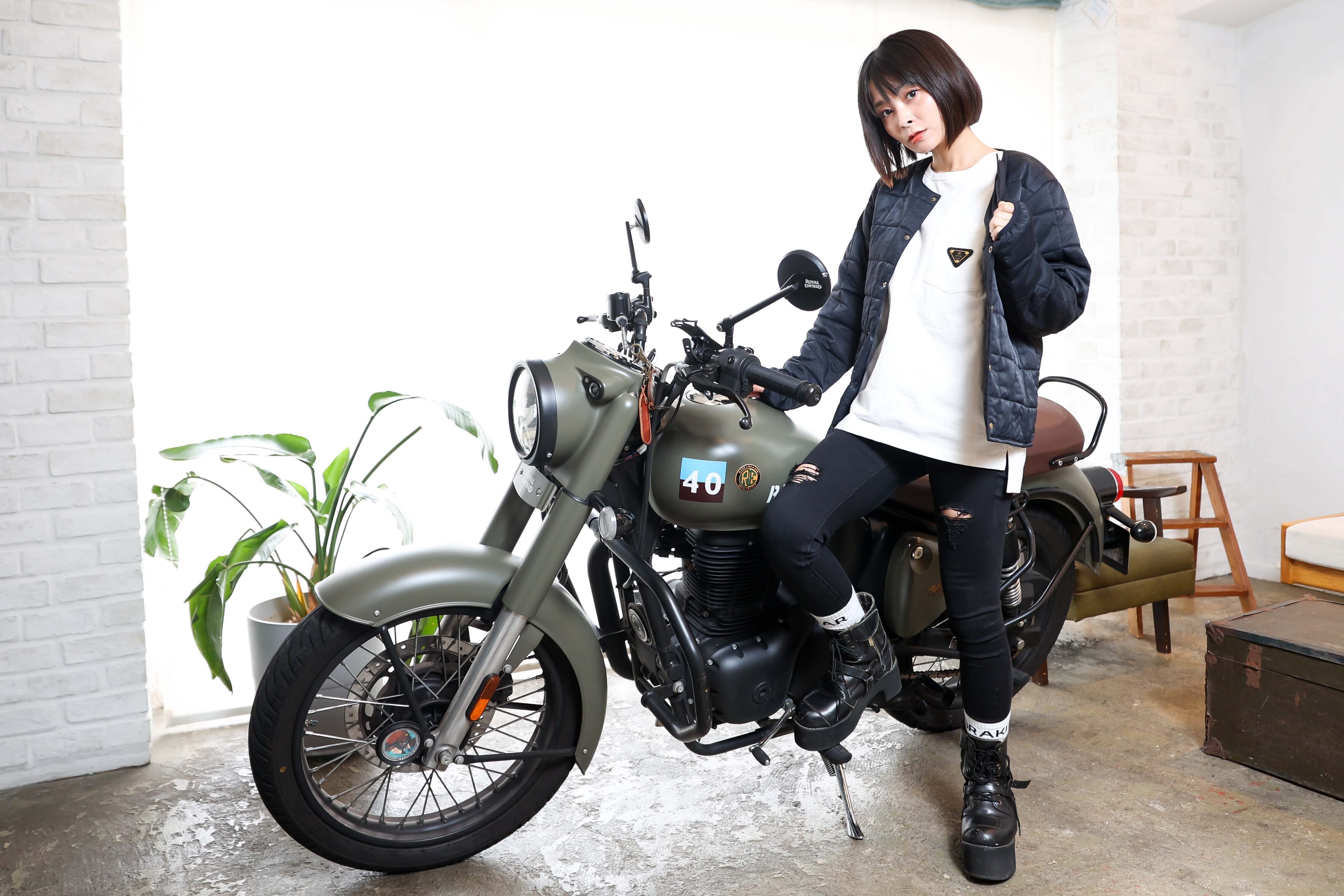 ロイヤルエンフィールドをこよなく愛する女子。愛車は2008年式Bullet350(逆シフト車)、、と思いきや今はCLASSIC 350 を乗っていてBullet350は入院中。