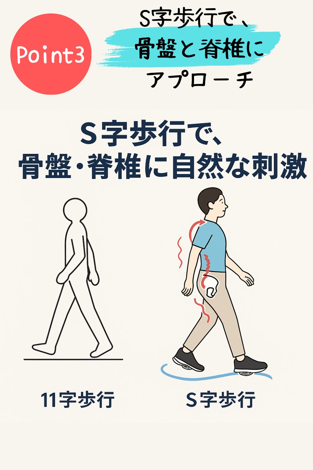 ③ S字歩行で、骨盤と脊椎にアプローチ