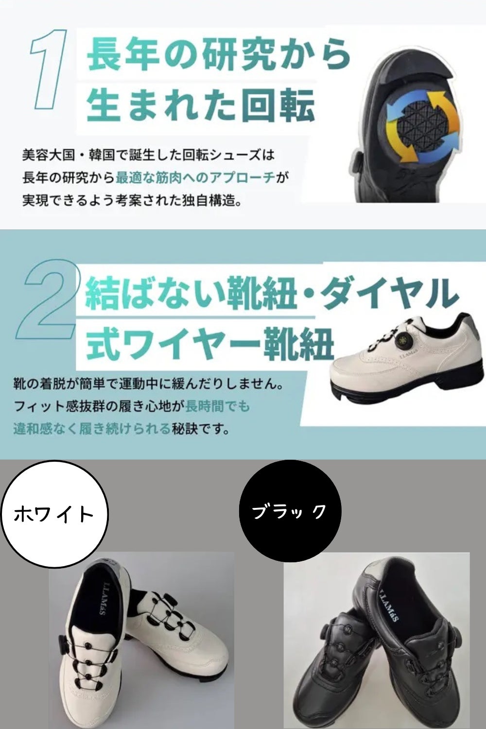 → 回転ソールによって、従来の“11字歩行”ではなく、自然と“なめらかなS字歩行”が生まれます。