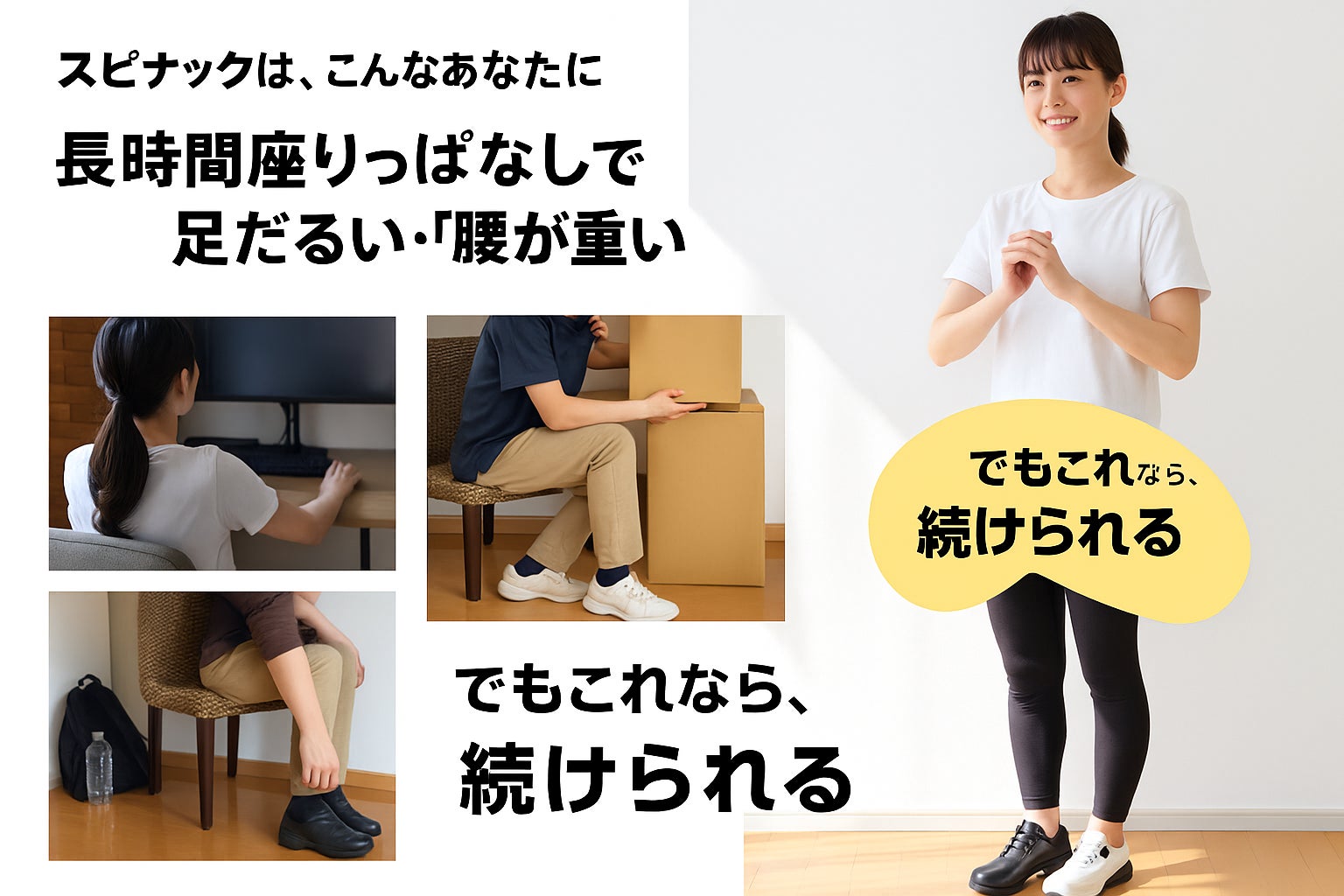 スピナットは、運動不足の現代人の足元に“体幹の刺激”を届けるシューズです。