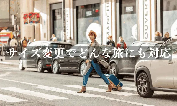 サイズ変更に加えて、旅をストレスフリーに過ごせる便利な機能を1つに凝縮しました。