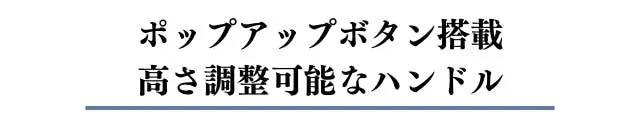 4つの高さ(94、100、105、110cm)調整が可能な伸縮ハンドルを採用しています。ハンドルにはポップアップボタンが装備され、必要な時に瞬時にハンドルを取り出すことが可能です。
