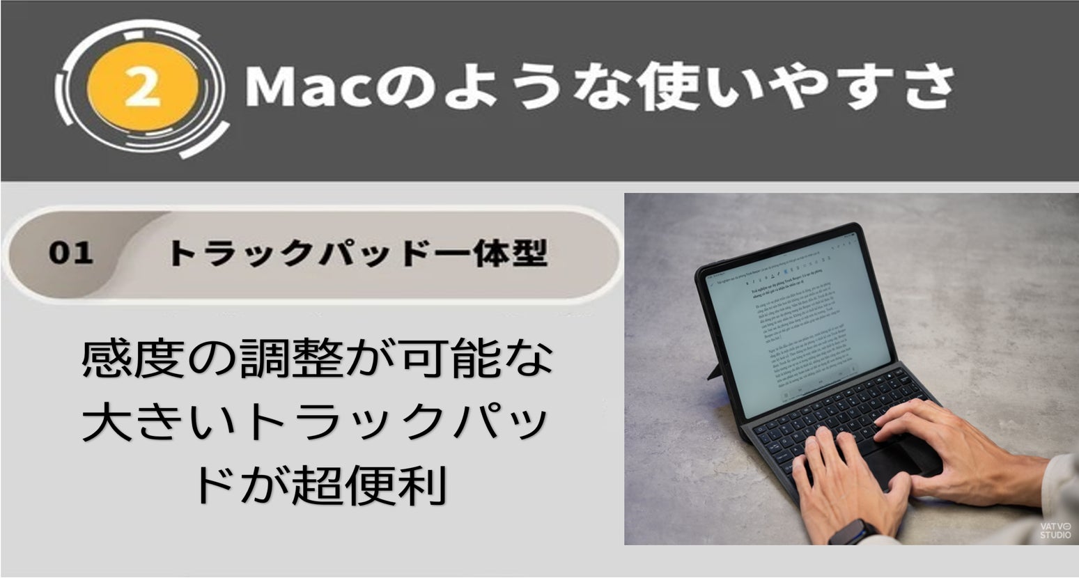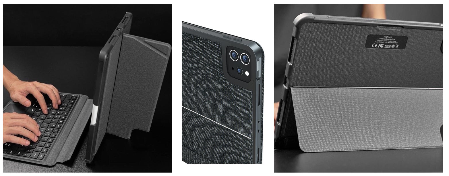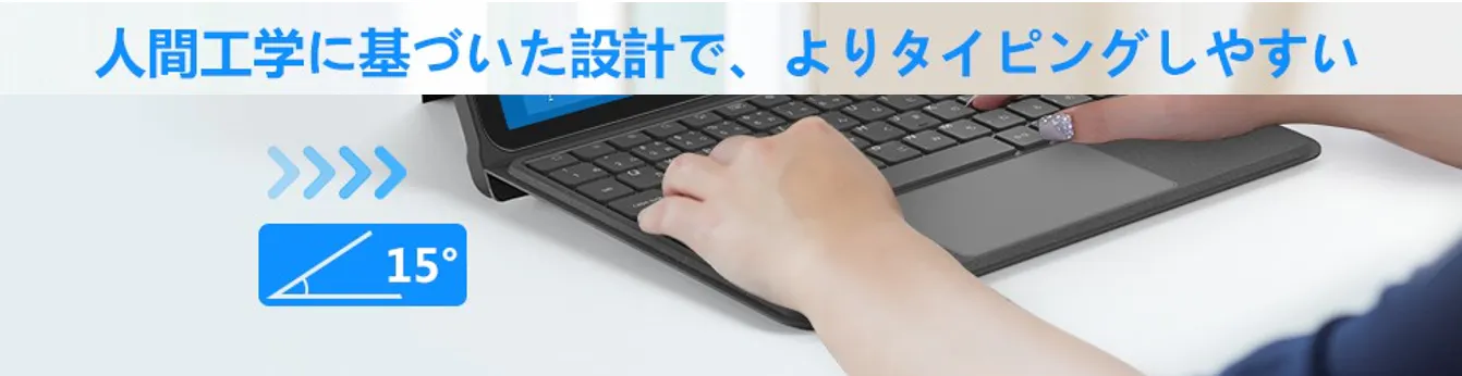 ※👆ここも、かつてのコンボタッチキーボードケースと全然違います。外面は触り心地が良く、他のiPadアクセサリーと調和する見た目になっています。