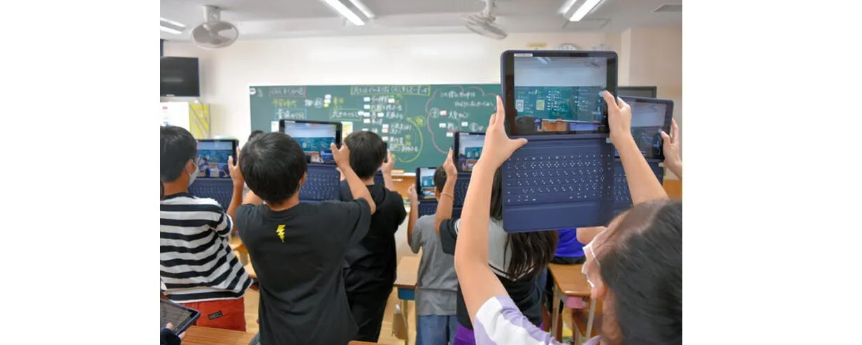小学生は1人1台のパソコンで授業を受け、先生方は「はい、今から撮影タイム」と言って、小学生は板書を写真に収める。これにより、授業の講義中は先生の話に集中する事で、より多くの事柄が脳の中に入っていく。