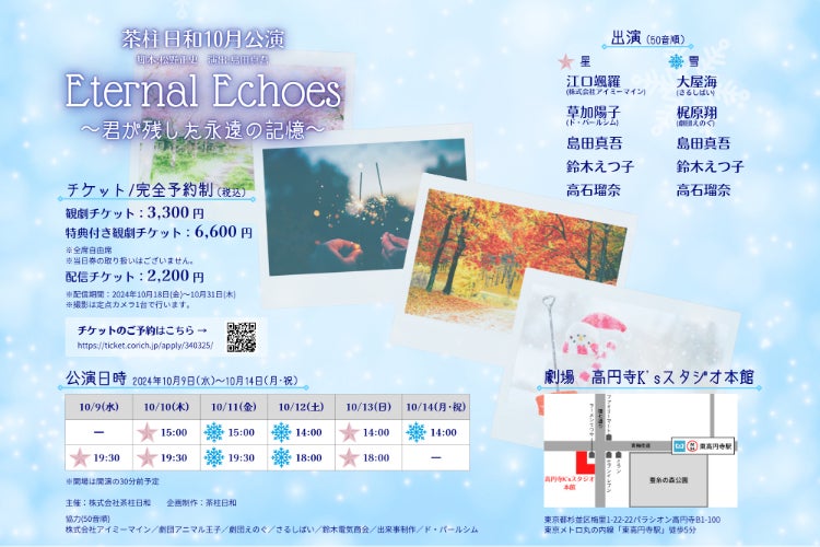 2010年から東京を拠点として活動している『茶柱日和』です。これまでも、様々なジャンルやスタイルのオリジナル作品を創り出し、数多くの人達に提供し、多数の舞台公演を成功させてきましたが、今回は新たな挑戦として、国境を越えた人達に舞台の魅力を伝えたいと考えています。