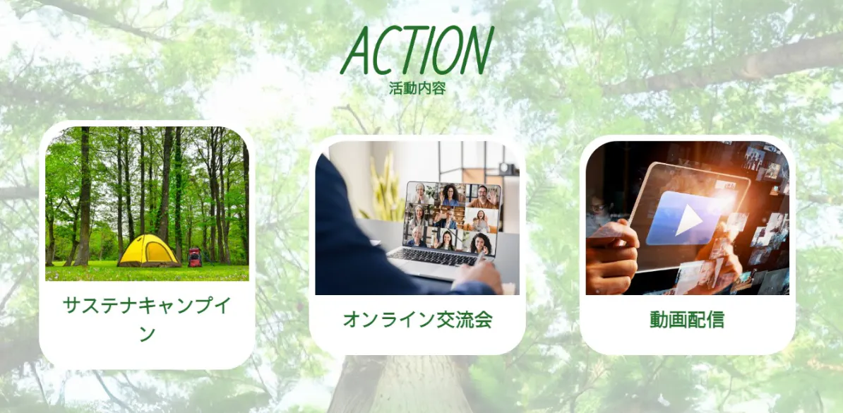 具体的な取り組みとして、サステナブルなテーマをジブンゴト化してチャレンジする、仲間づくりの出会い・学び・共創のプロジェクトを推進します。