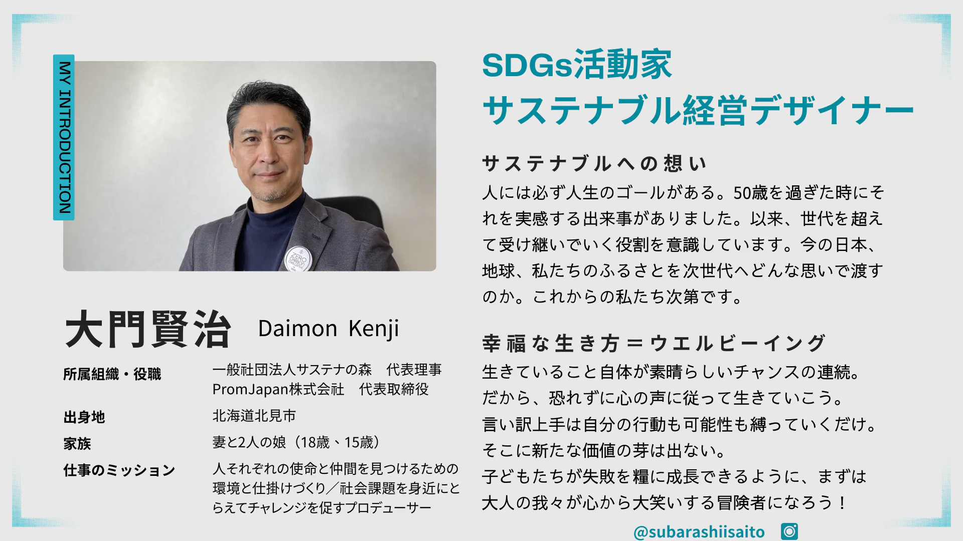 こんにちは。あまり知られていないSDGsの本質を伝えるサステナビリティコーチの大門賢治(だいもん けんじ)です。