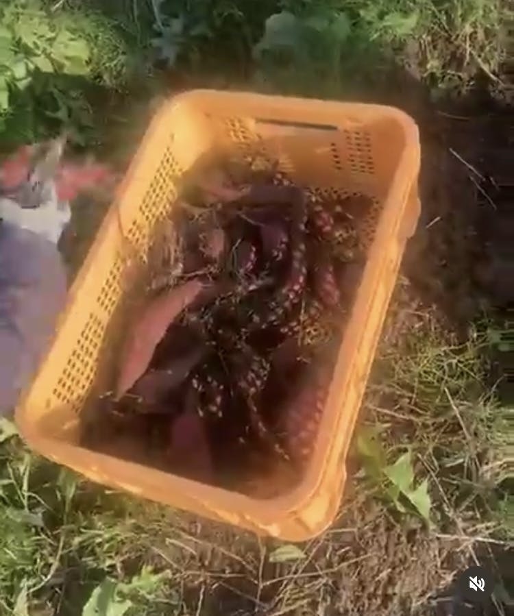 掘ったさつまいもはコンテナに集め、2〜3週間冷暗所で保管すると糖度が増して美味しくなります。