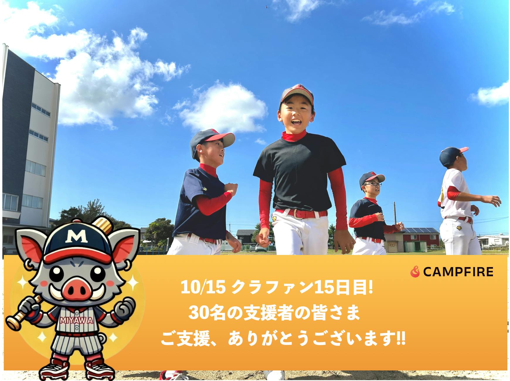 おかげさまで、宮和学童野球クラブはクラウドファンディング開始から15日が経過しました!! 皆様の温かいご支援により、着実に全国大会への準備を進めております。